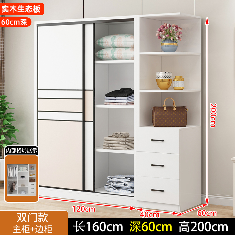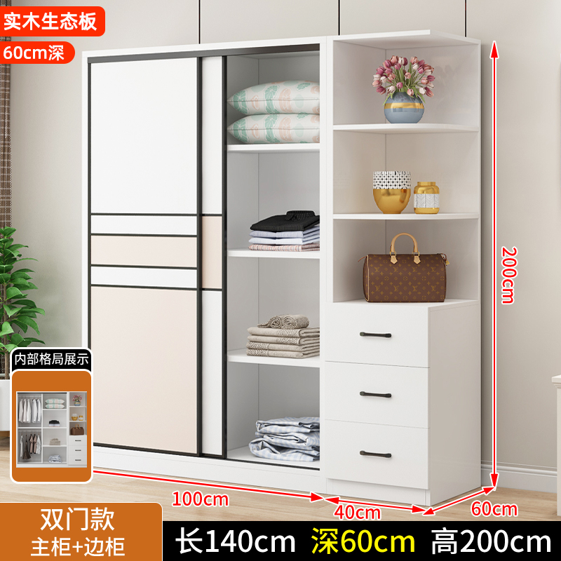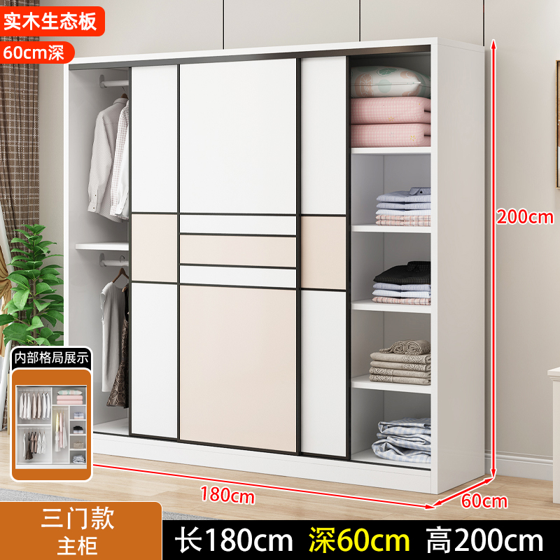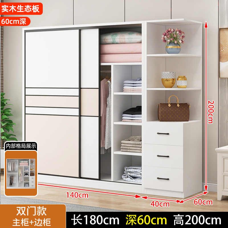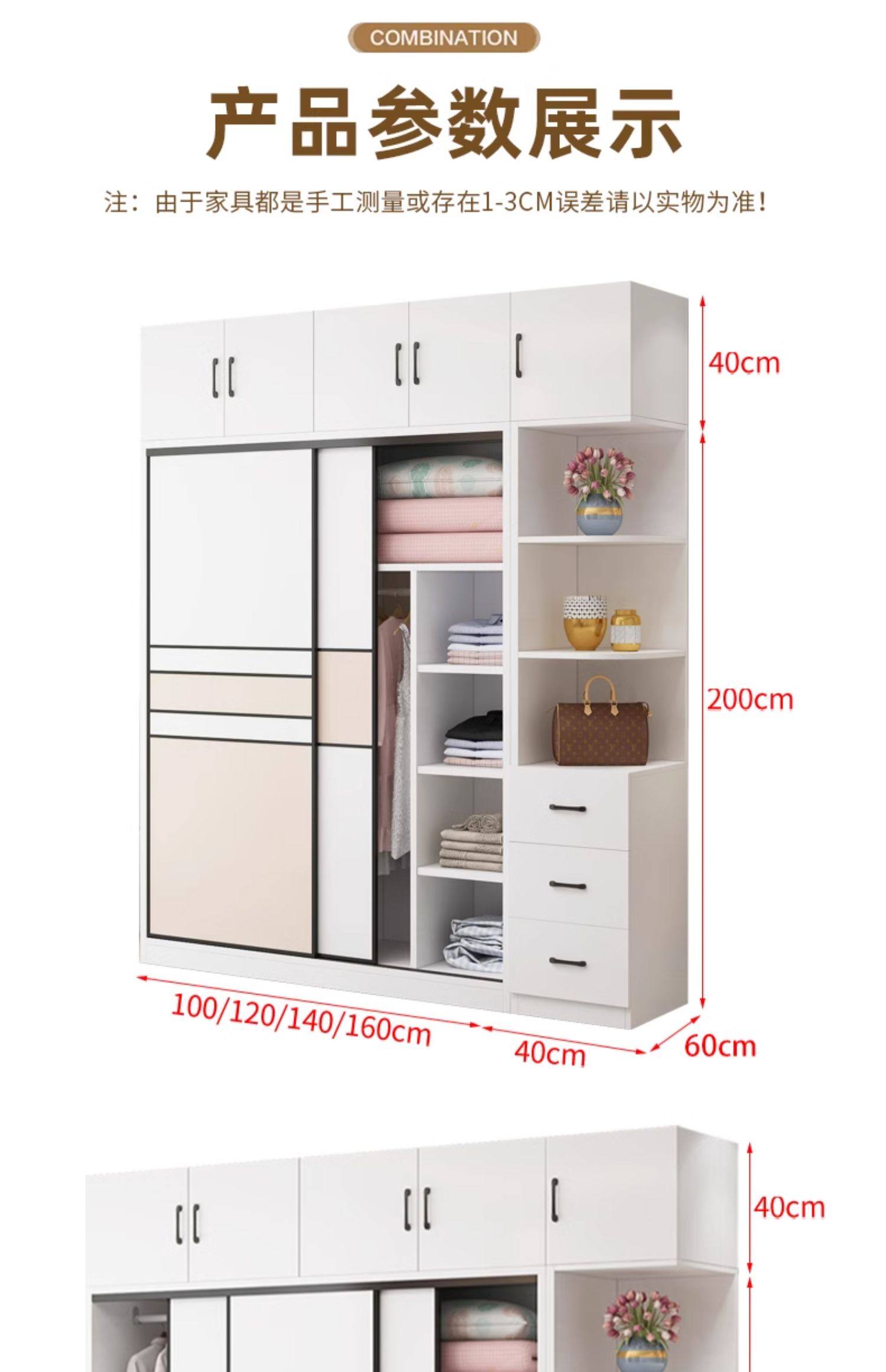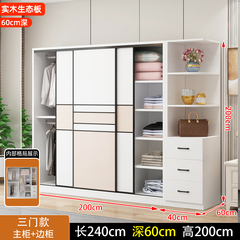 • 길이 200 높이 200 깊이 60 메인 캐비닛 3도어 + 사이드 캐비닛 [단단한 나무 패키지 위층 설치]