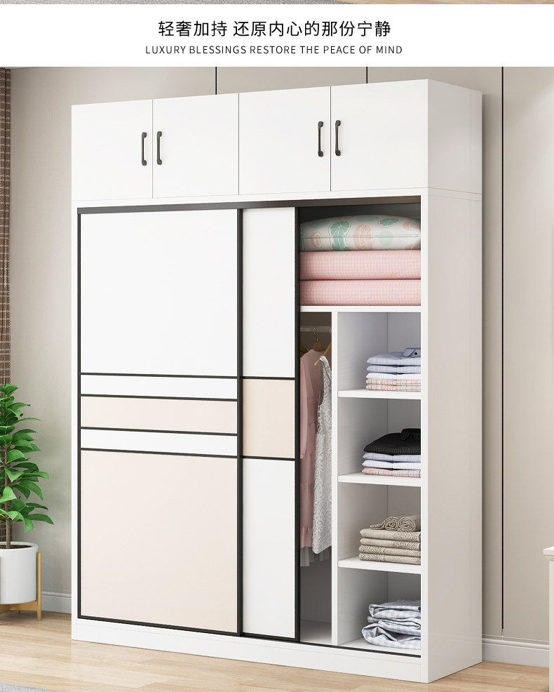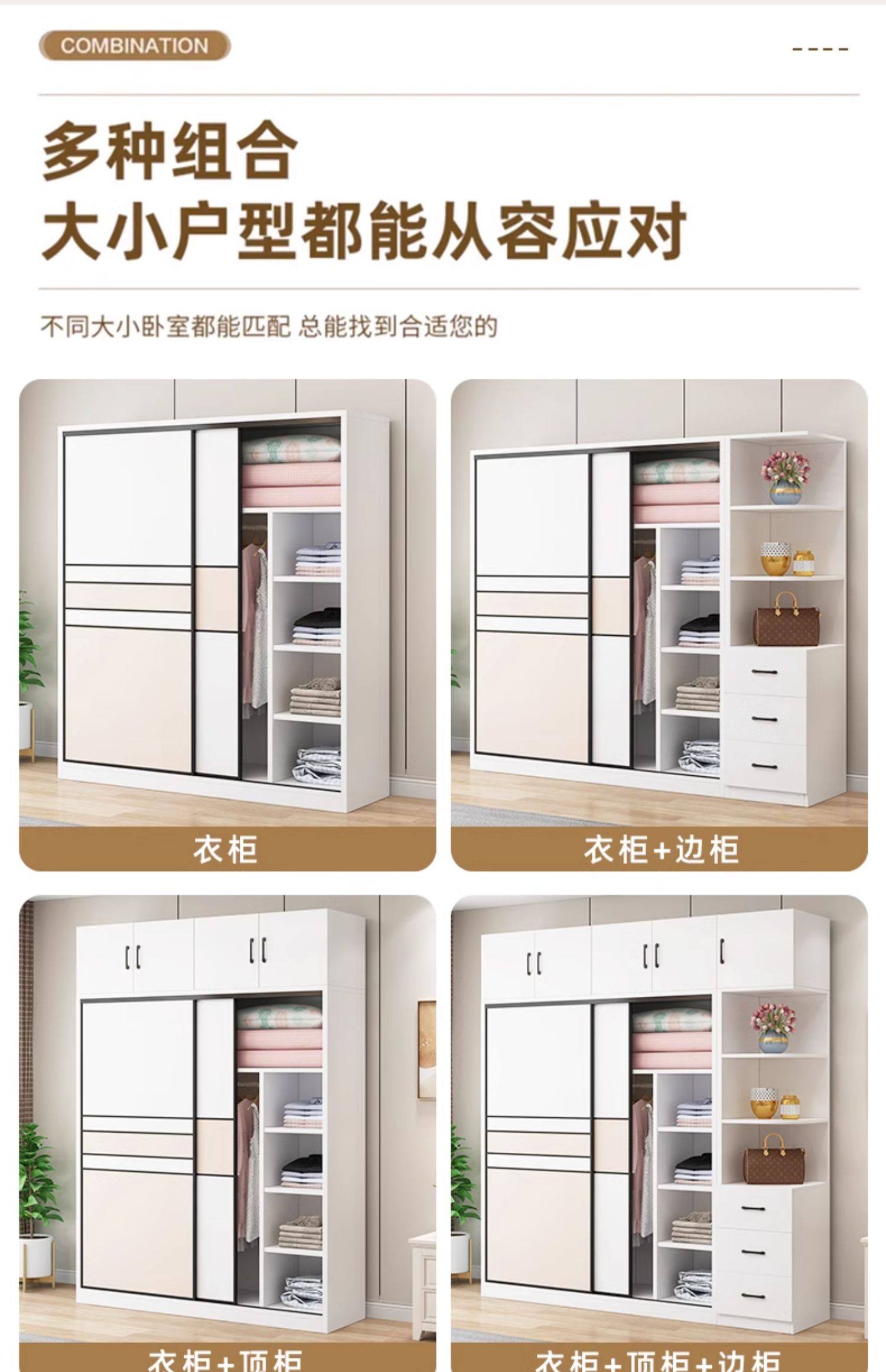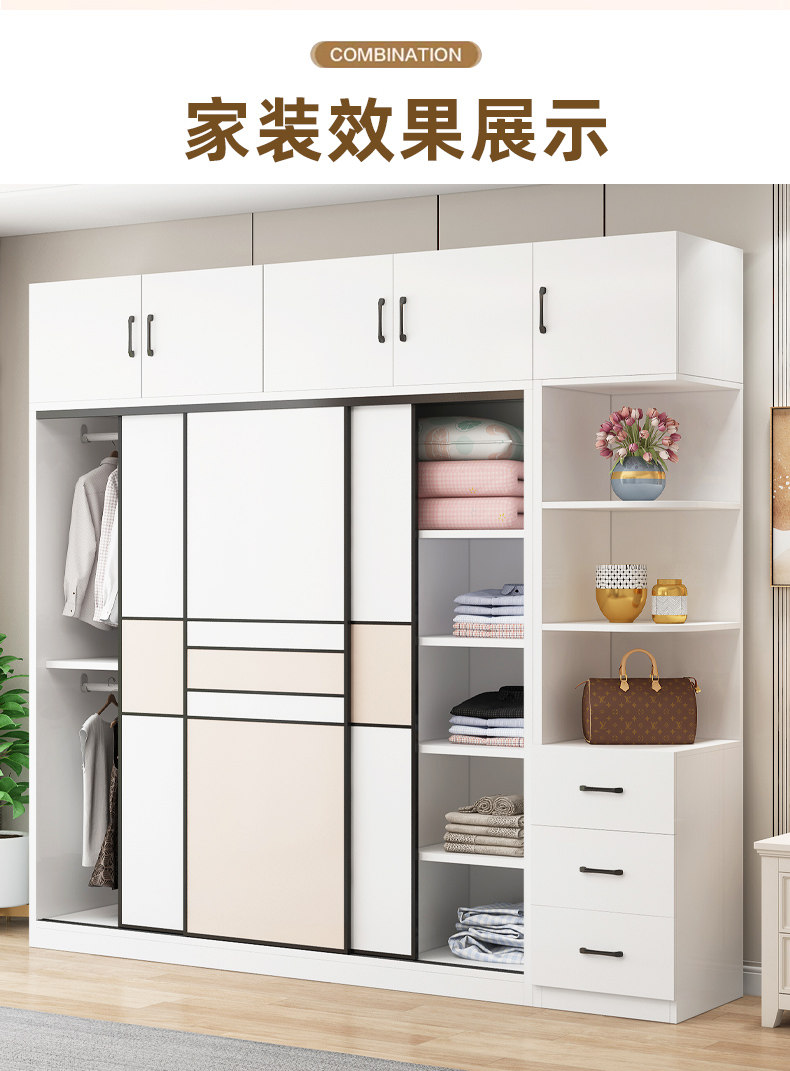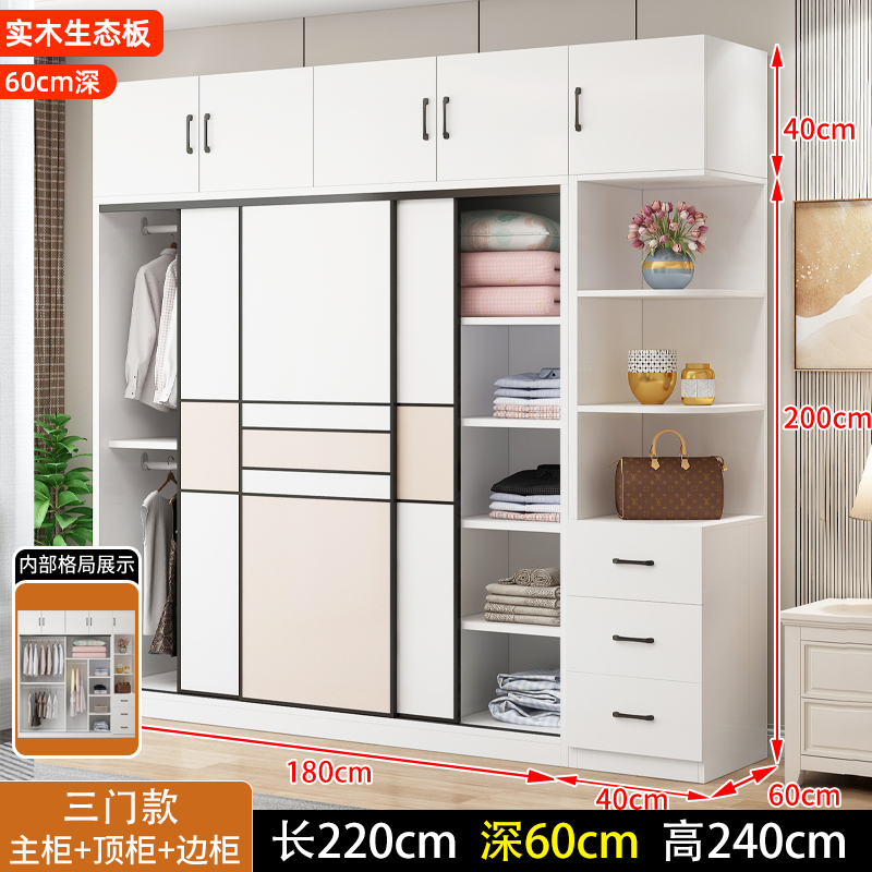 • 길이 200 높이 200 깊이 60 메인 캐비닛 3도어 + 상단 캐비닛 + 측면 캐비닛 [단단한 나무 패키지 위층 설치]