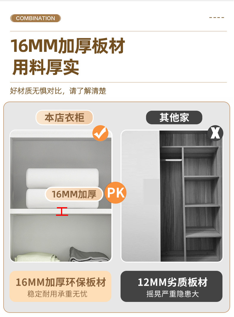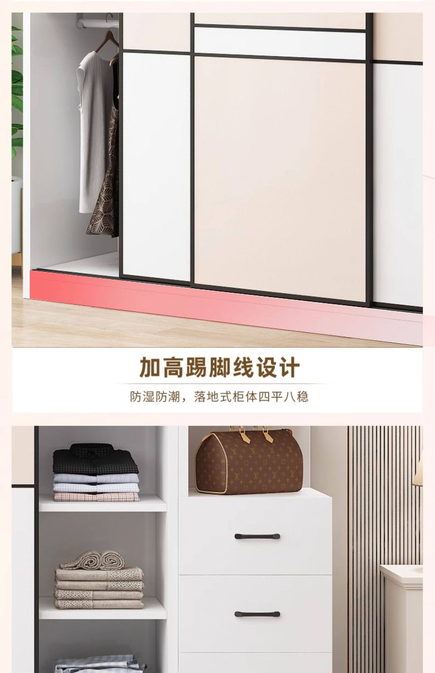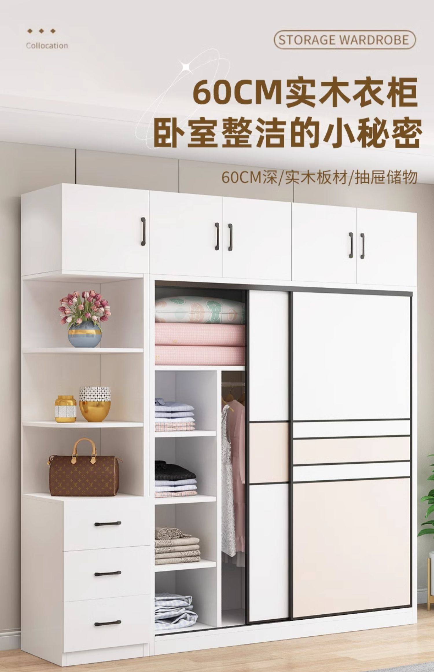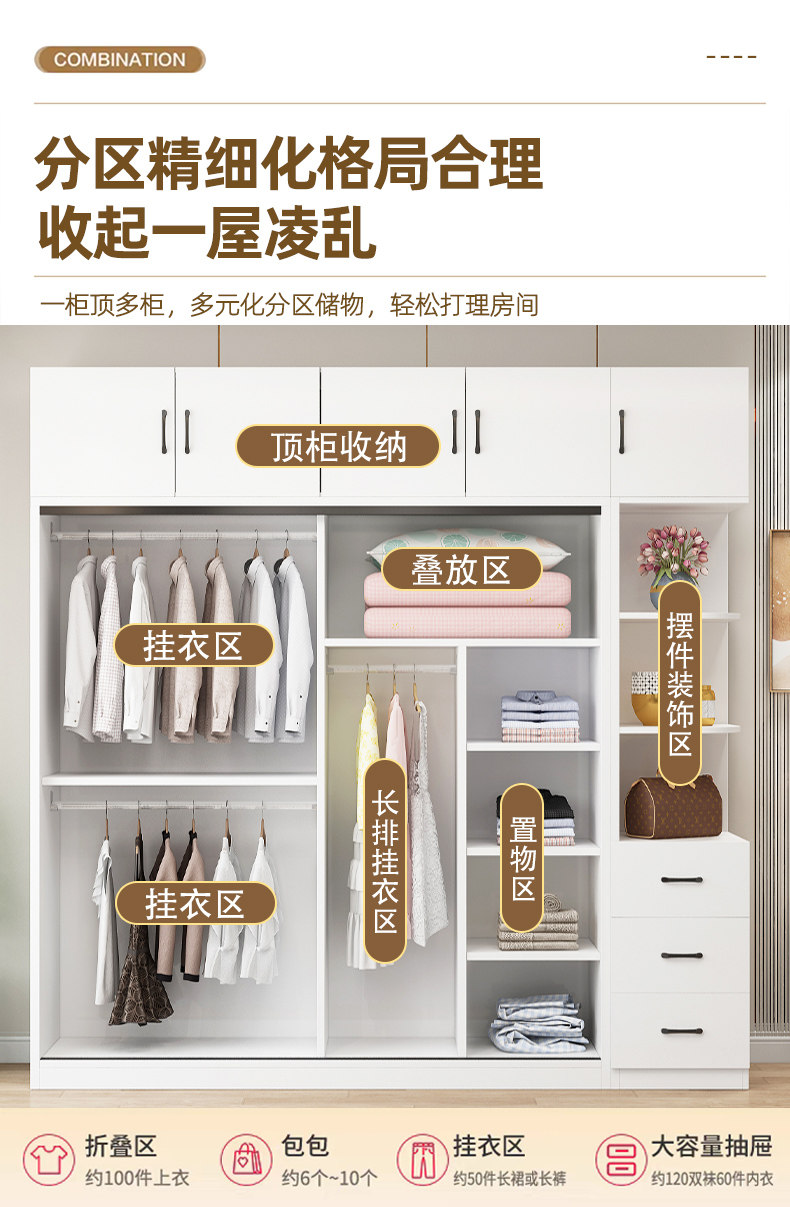 • 길이 200 높이 200 깊이 60 메인 캐비닛 3도어 + 상단 캐비닛 + 측면 캐비닛 [단단한 나무 패키지 위층 설치]