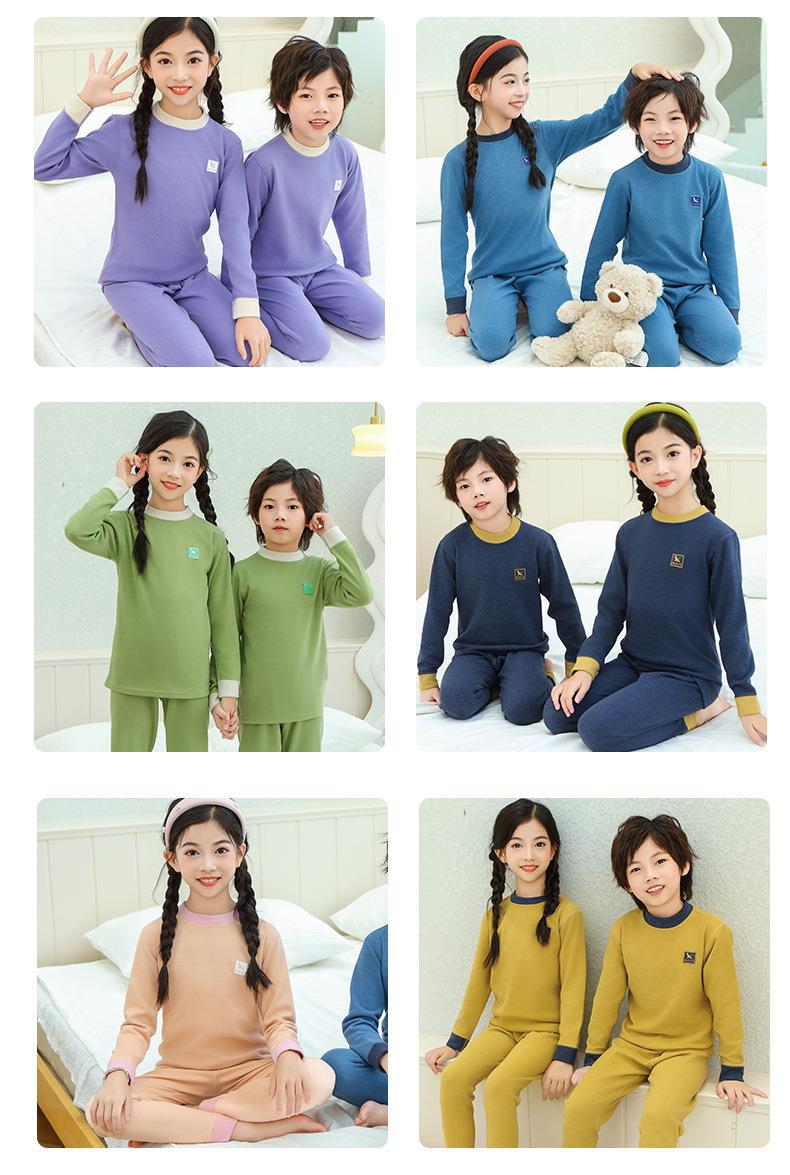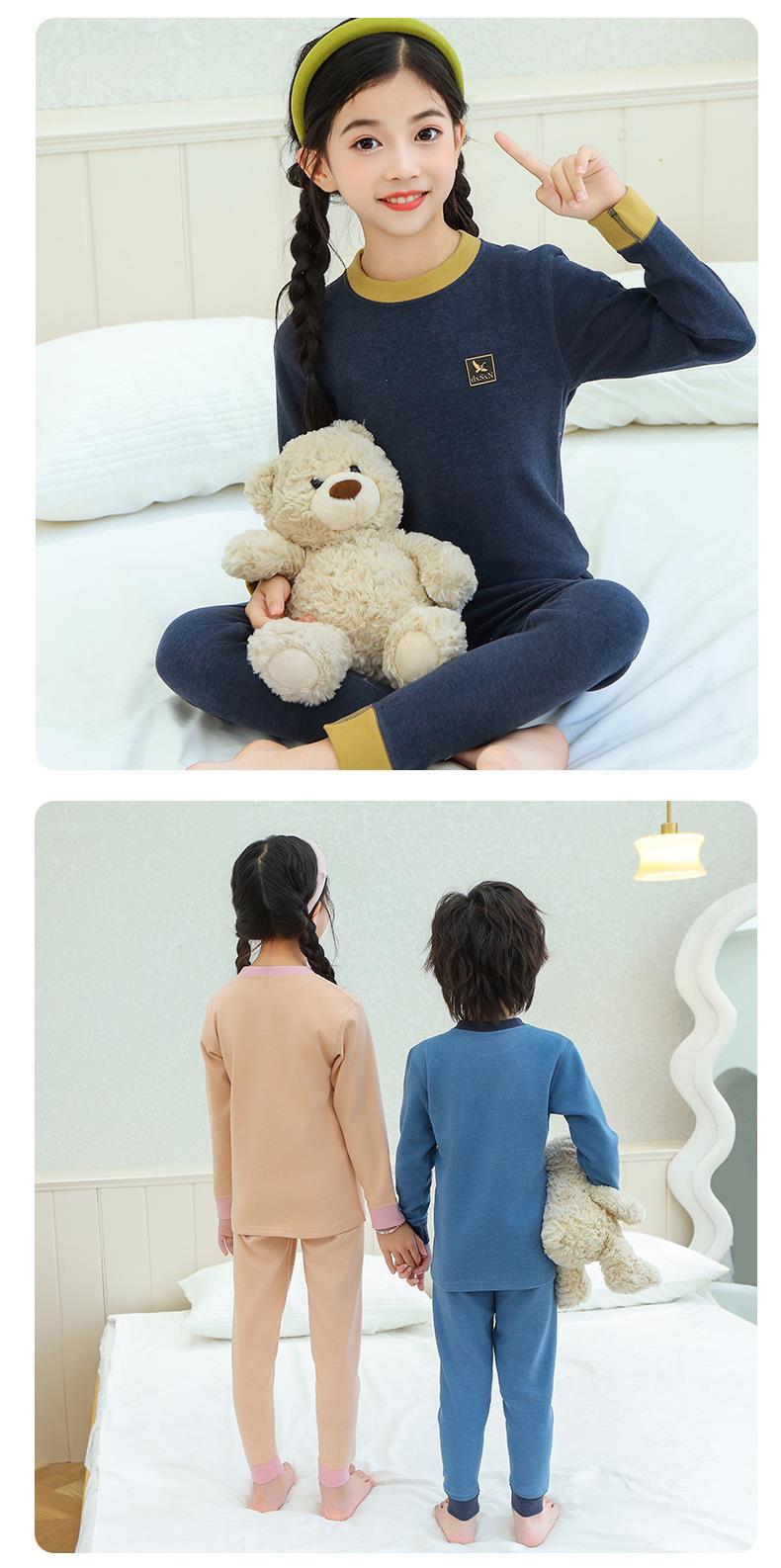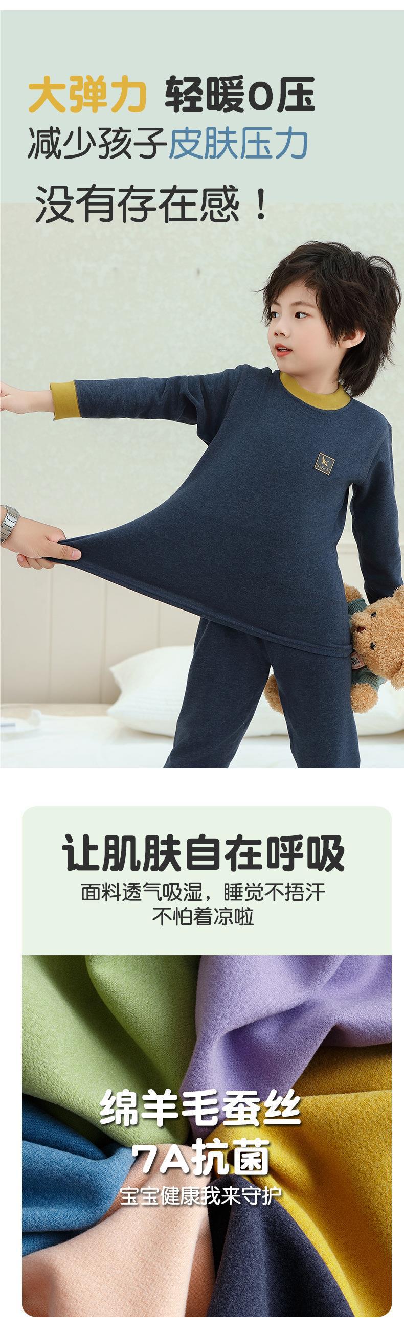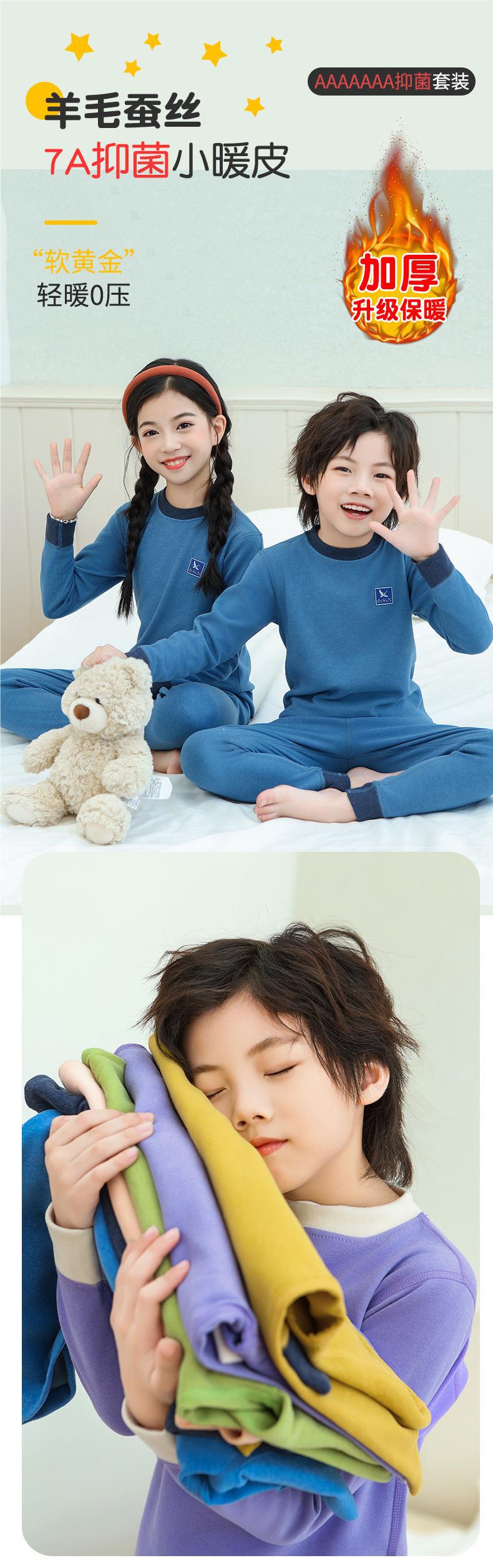 새로운 가을과 겨울 7A Bacteriostatic 울 실크 열 속옷 어린이 미들 칼라 파자마 투피스 세트 소년과 소녀스토어 가기