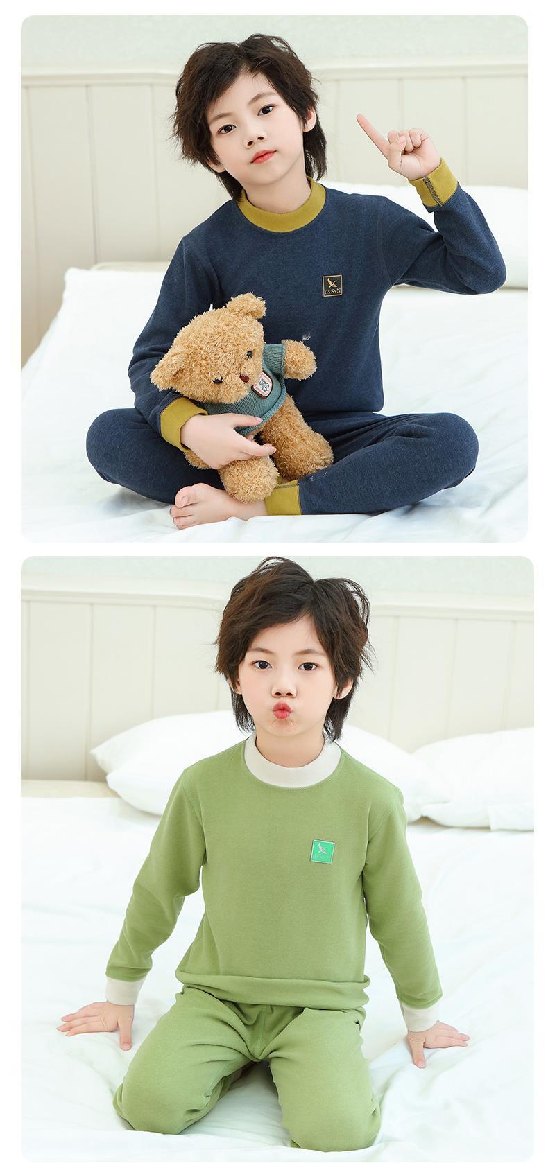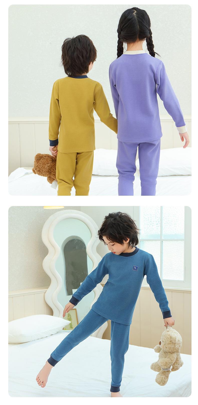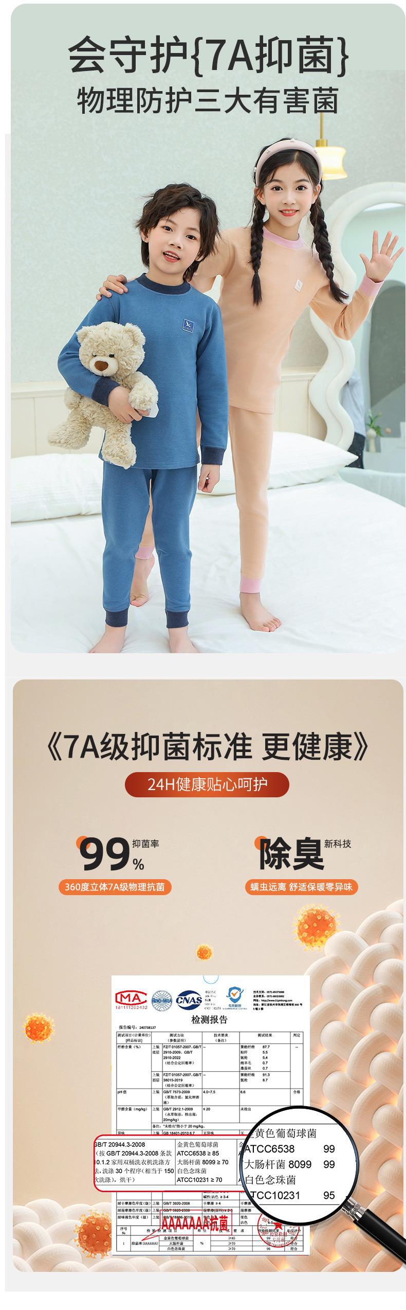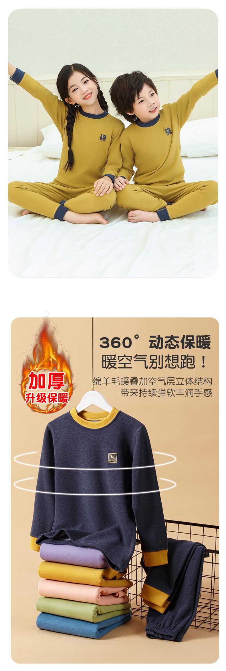 새로운 가을과 겨울 7A Bacteriostatic 울 실크 열 속옷 어린이 미들 칼라 파자마 투피스 세트 소년과 소녀스토어 가기