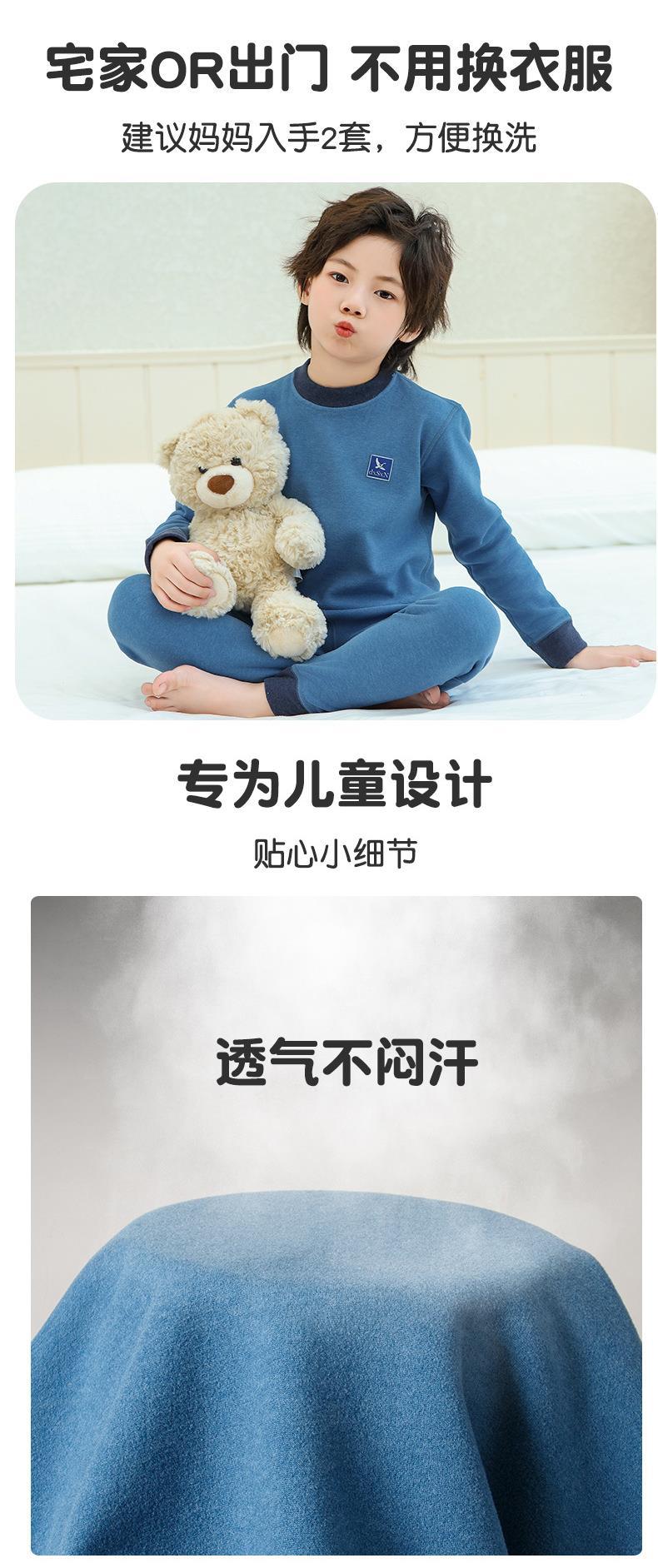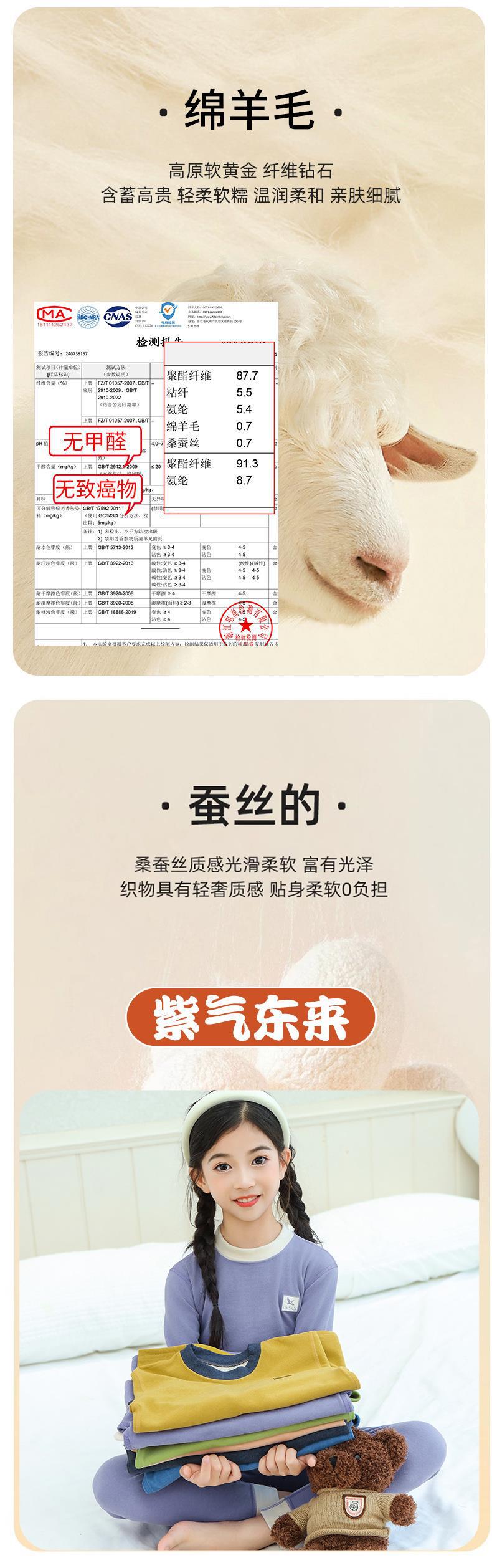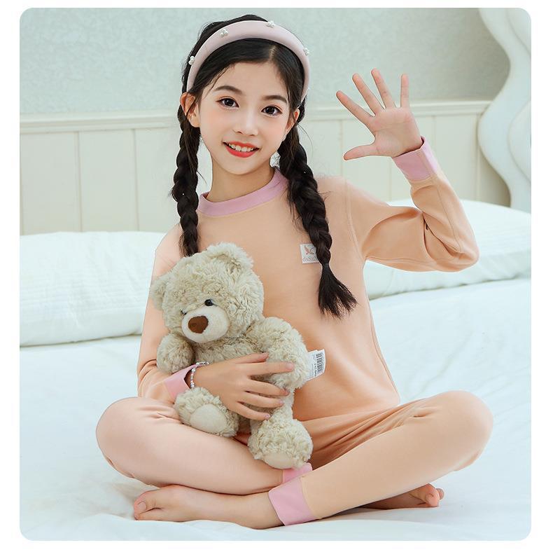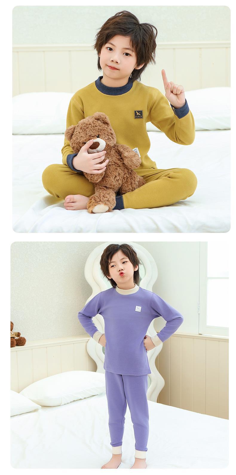 새로운 가을과 겨울 7A Bacteriostatic 울 실크 열 속옷 어린이 미들 칼라 파자마 투피스 세트 소년과 소녀스토어 가기