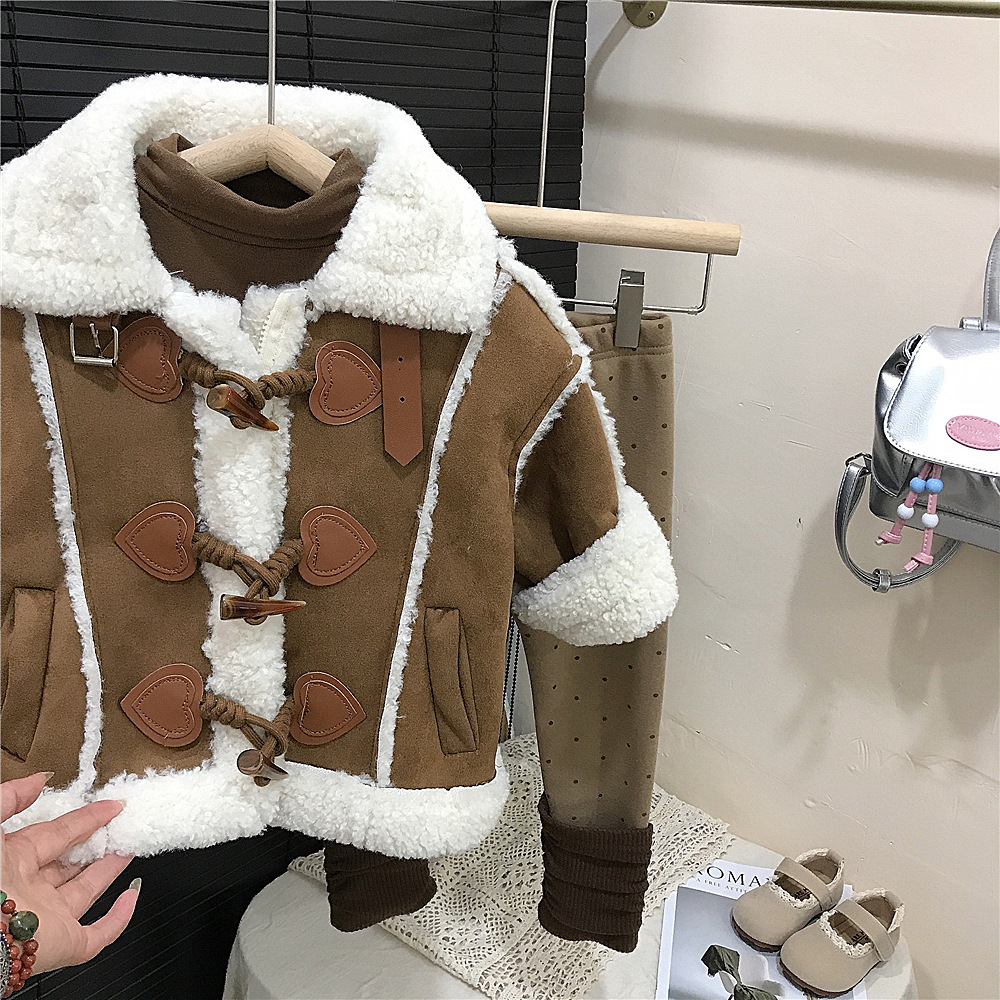 소녀 코트 겨울 기모 짧은 코트 서양식 어린이 아동복 가을과 겨울 모피 원피스 따뜻한 재킷 두꺼운스토어 가기