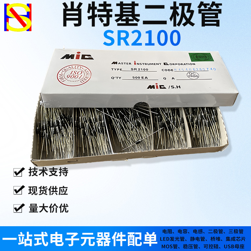 一站式电子元器件BOM配单SR2100 插件肖特基二极管 DO-15 散装/编带/定型脚/立式