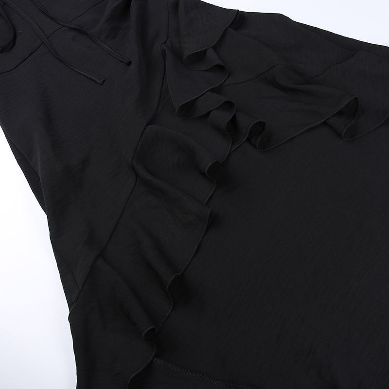 국경을 넘나 드는 블랙 러플 불규칙한 원피스 여자 여름 새 스타일 오프 숄더 타이트 허리 섹시한 중간 길이 스커트