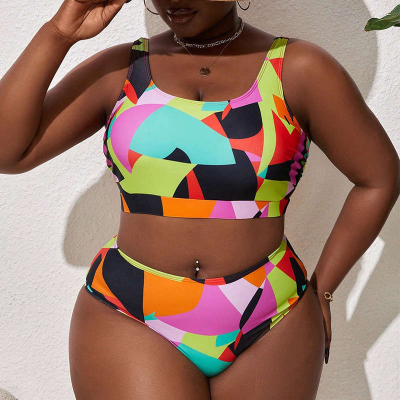 2024 새로운 유럽과 미국의 인쇄 플러스 사이즈 수영복 여성 섹시한 비키니 아마존 대외 무역 분할 수영복