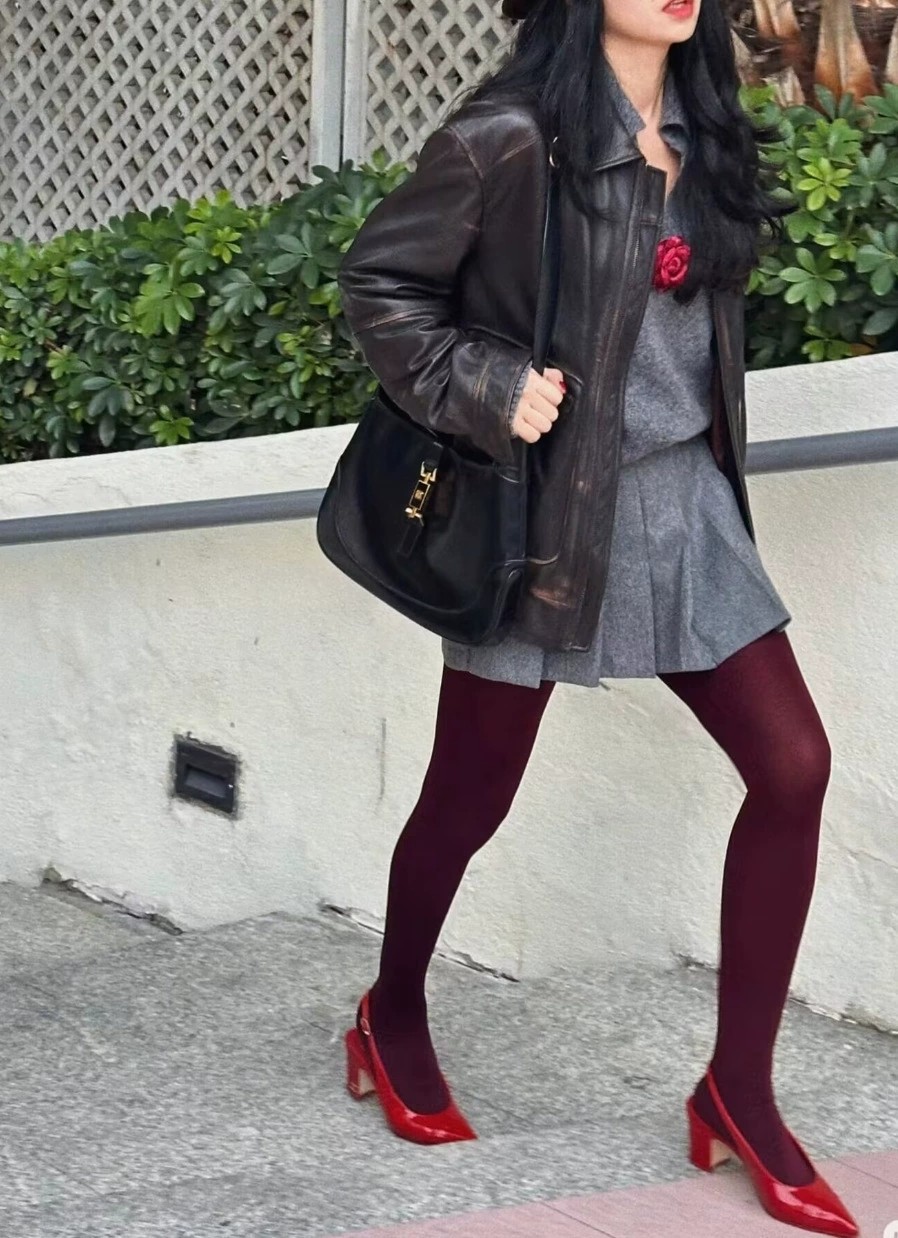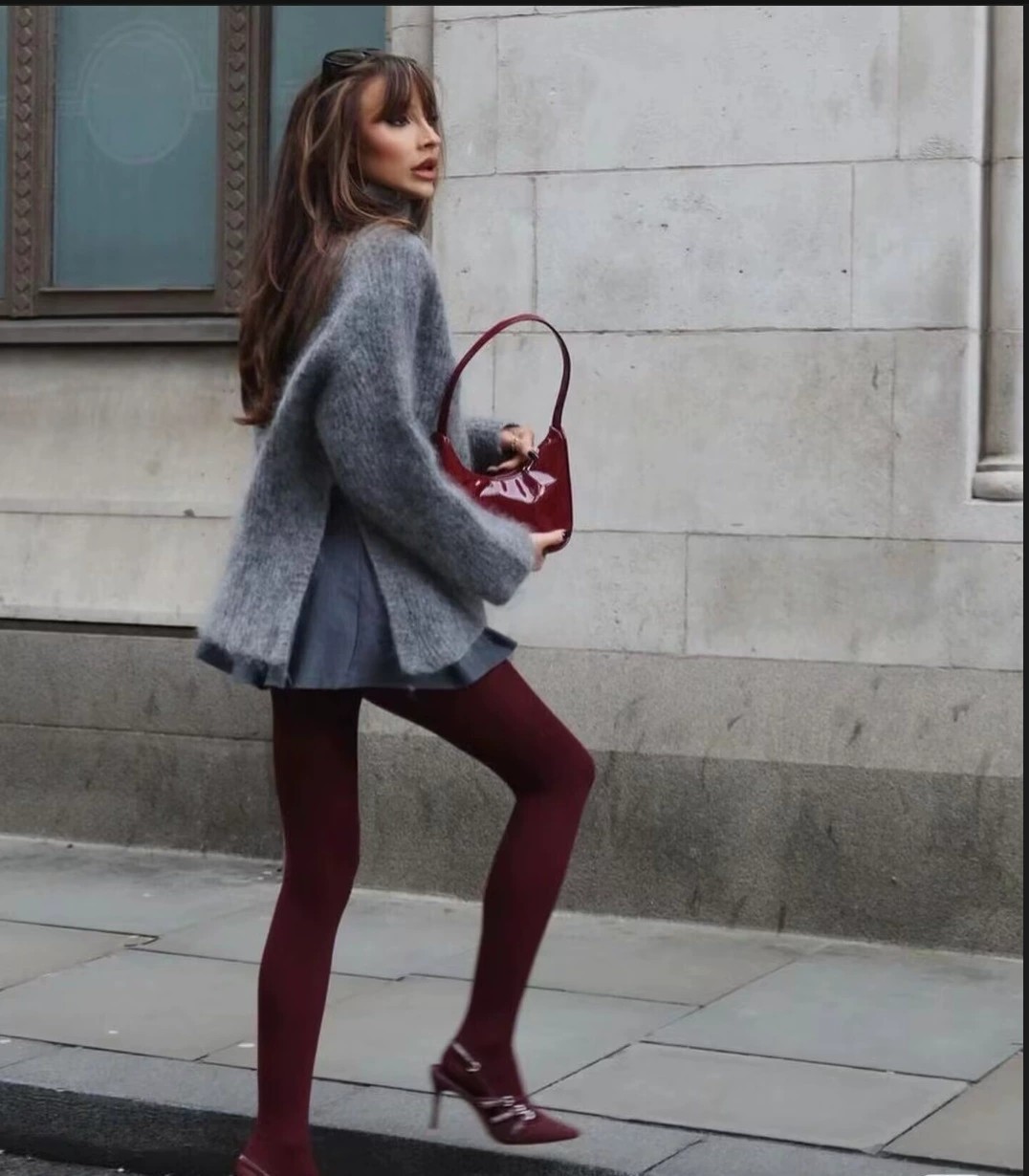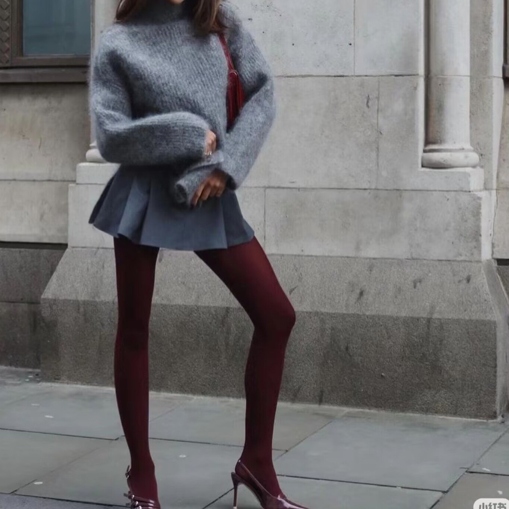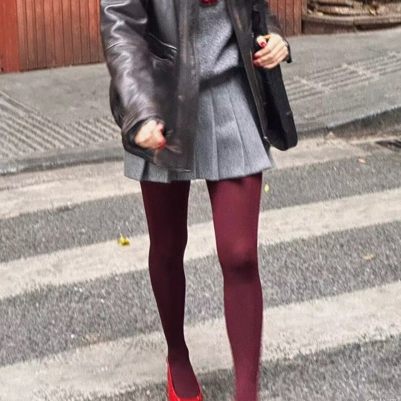 앙고라 레드 동일 버건디 팬티 스타킹 약간의 압축 타이트베이스 스타킹 봄과 가을 매트 투과성 고기 팬티 스타킹 슬리밍스토어 가기