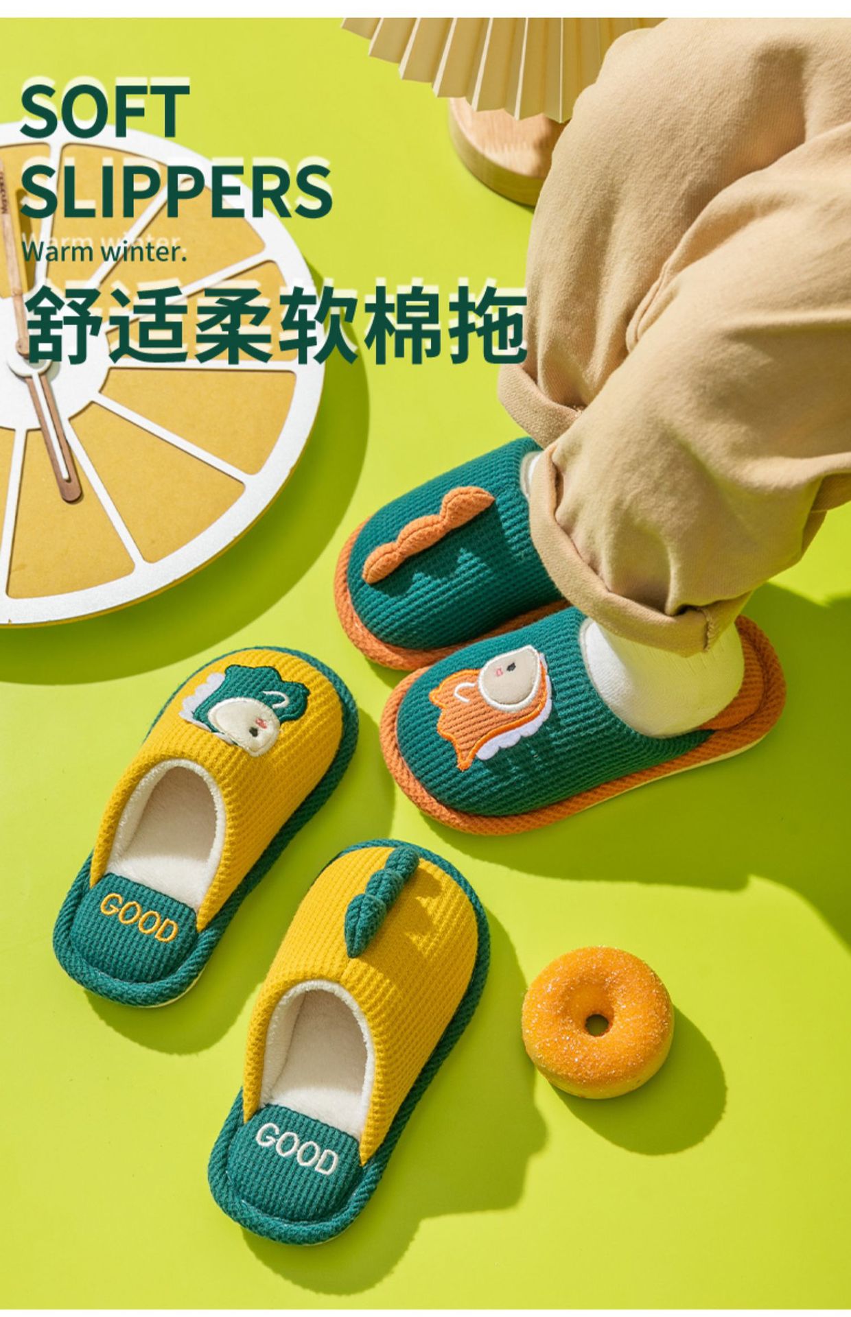 어린이 면 슬리퍼 겨울 여자 홈 실내 귀여운 바오터면 슬리퍼 소년 미끄럼 방지 따뜻한 부모-자식 아기스토어 가기