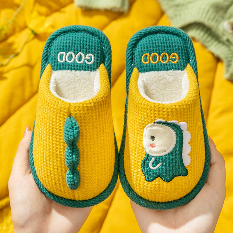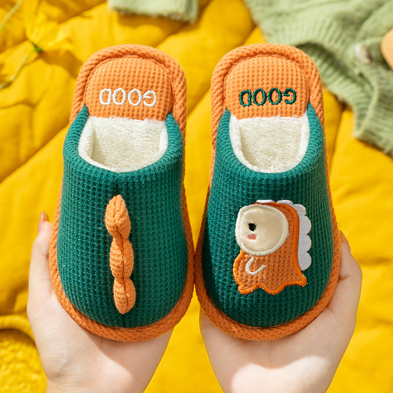 어린이 면 슬리퍼 겨울 여자 홈 실내 귀여운 바오터면 슬리퍼 소년 미끄럼 방지 따뜻한 부모-자식 아기