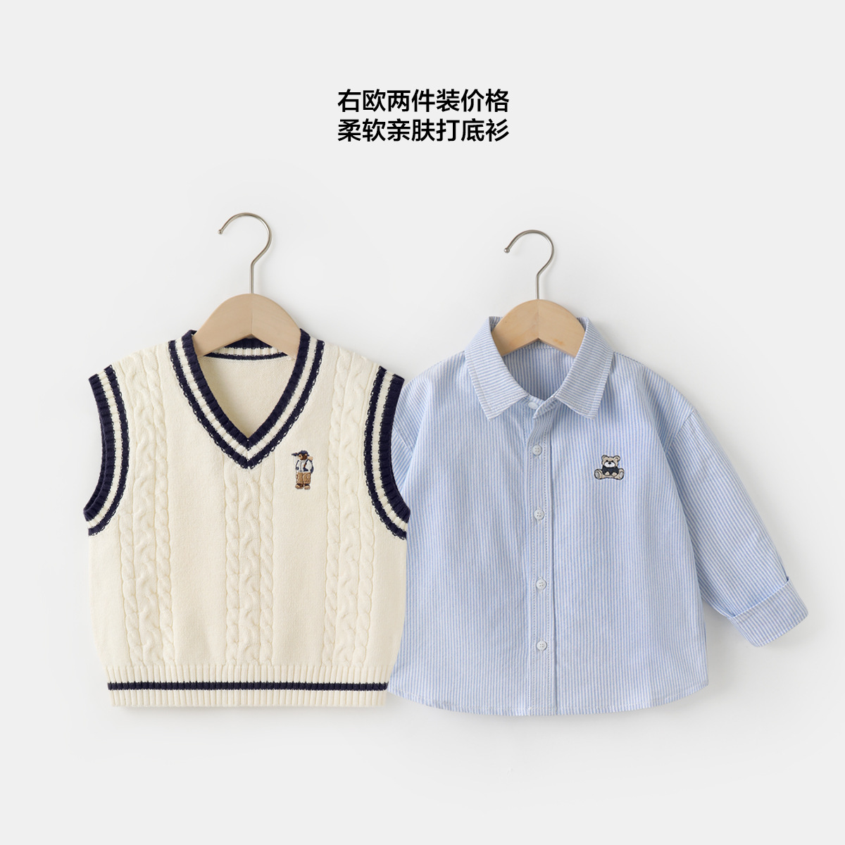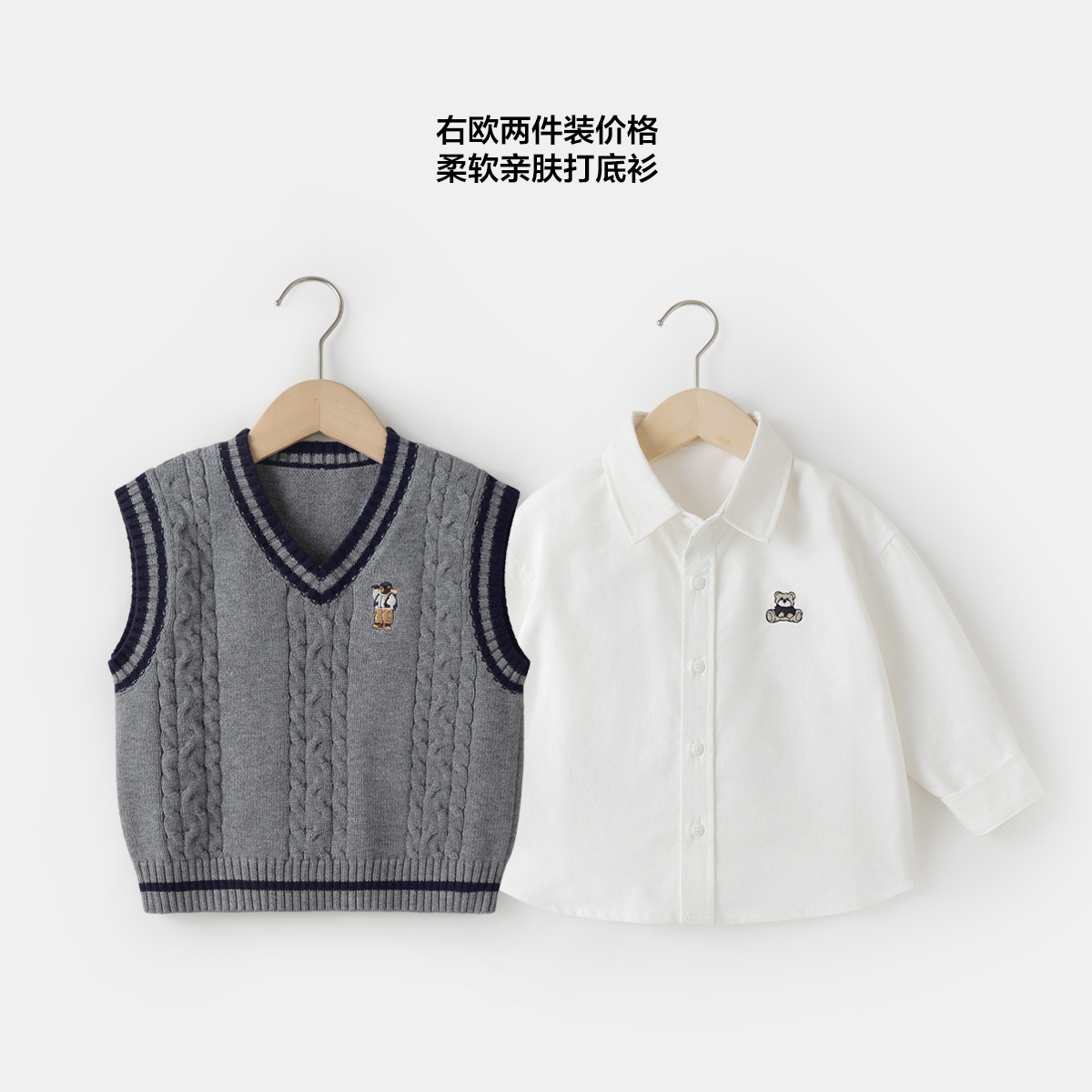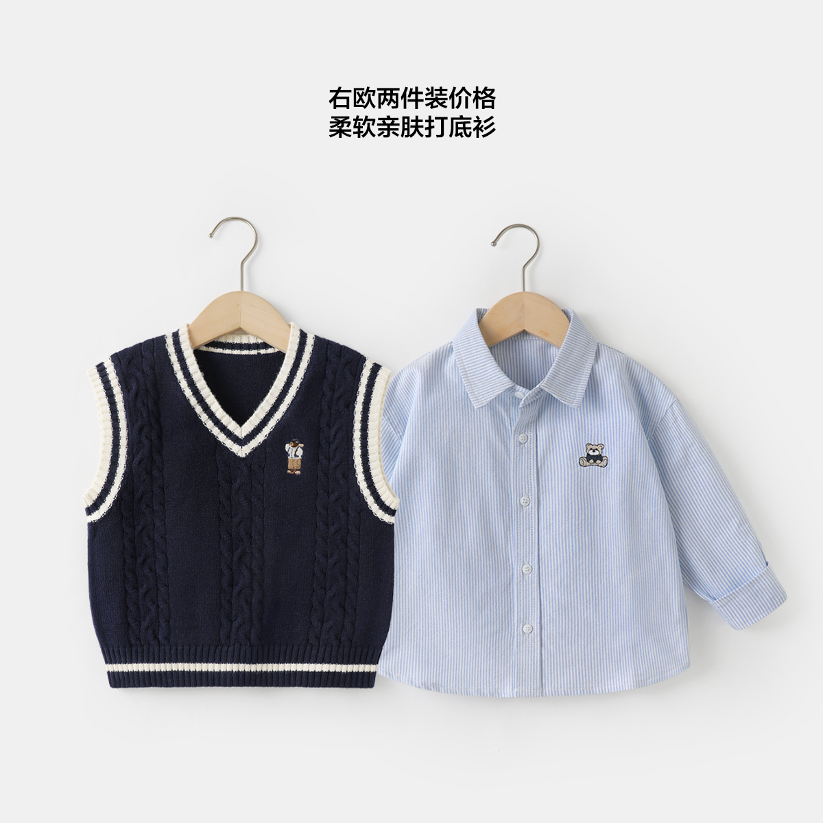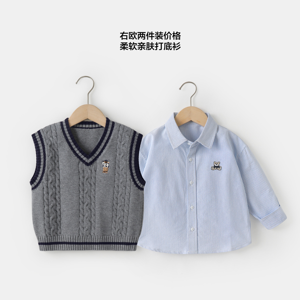 소년의 가을 세트 셔츠 조끼 2 종 세트 봄과 가을 새로운 어린이 의류 어린이 아기 셔츠 가을 UZ301