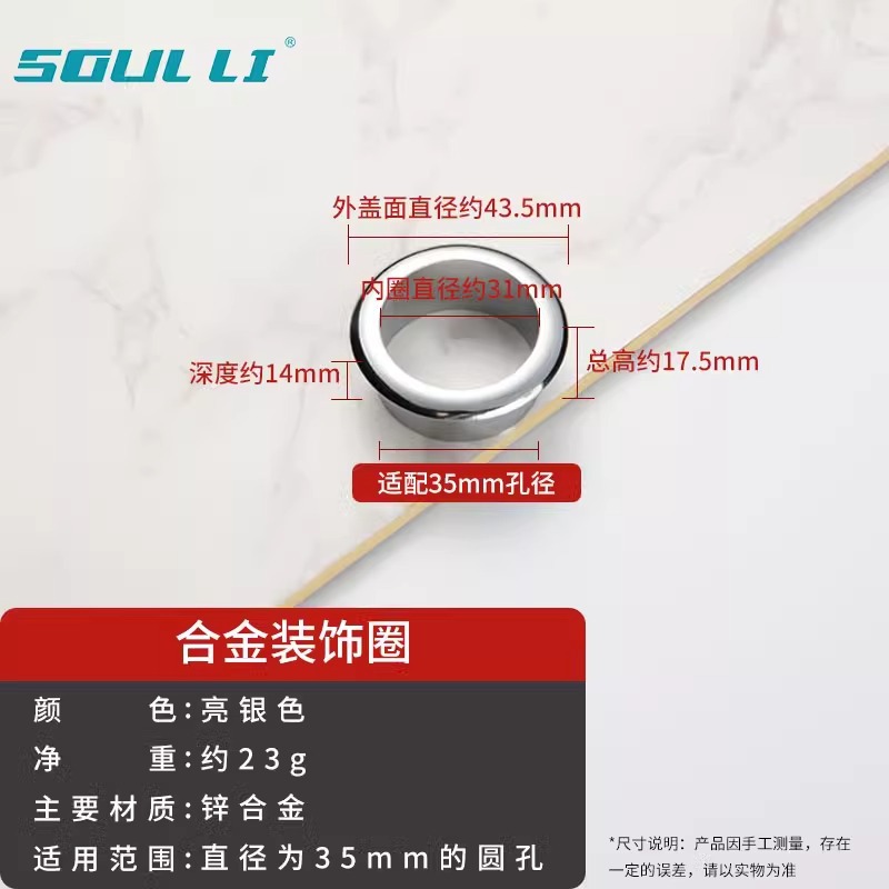 • 와이어 홀 커버 - 합금 장식 링 [브라이트 실버 35mm]