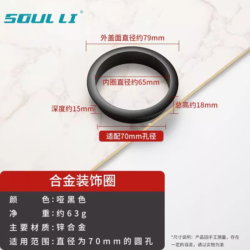 • 와이어 홀 커버 - 합금 장식 링 [매트 블랙 70mm]
