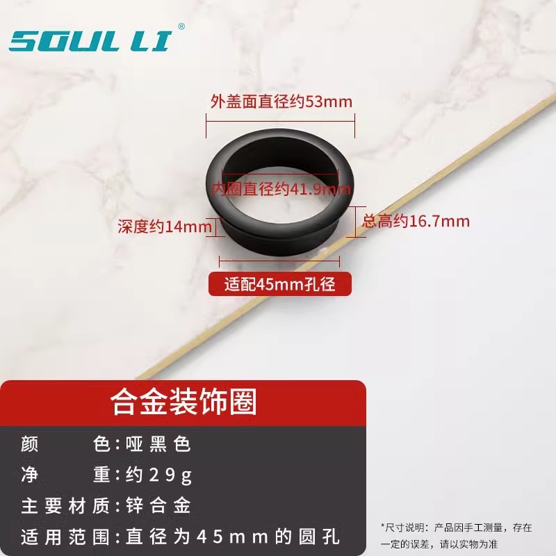 • 와이어 홀 커버 - 합금 장식 링 [매트 블랙 45mm]