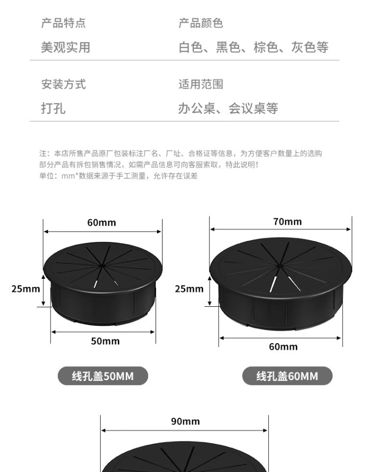 컴퓨터 책상 와이어 홀 커버 사무실 책상 구멍 장식 커버 스레딩 데스크 구멍 데스크탑 50 스레딩 구멍 커버 패널
