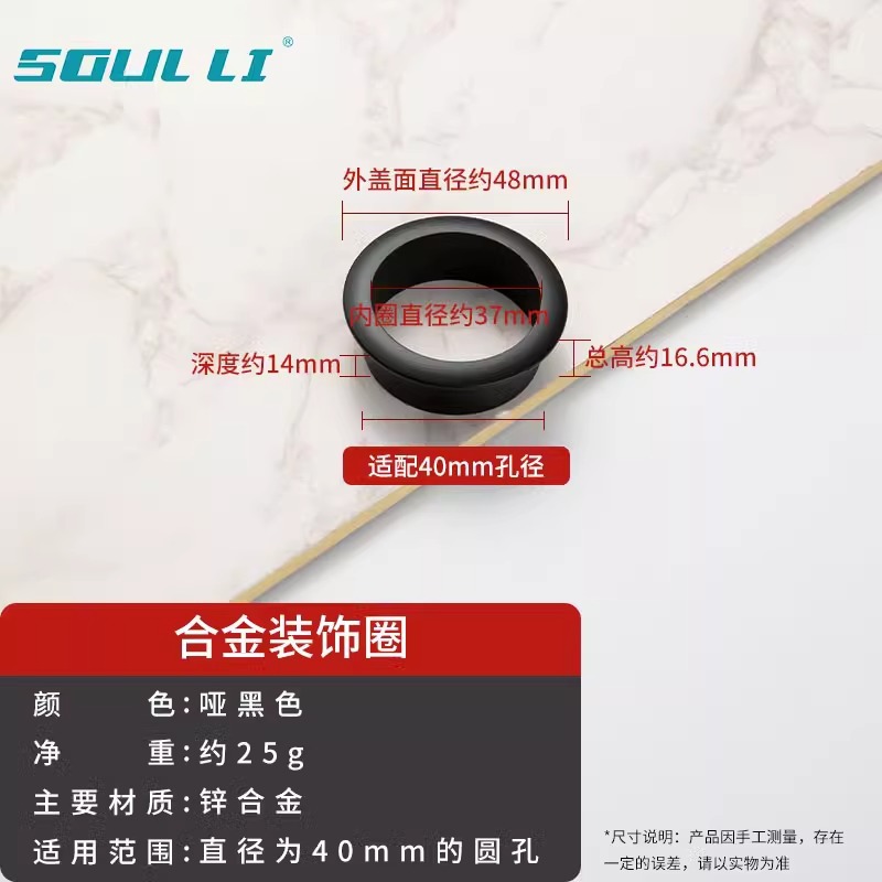 • 와이어 홀 커버 - 합금 장식 링 [매트 블랙 40mm]