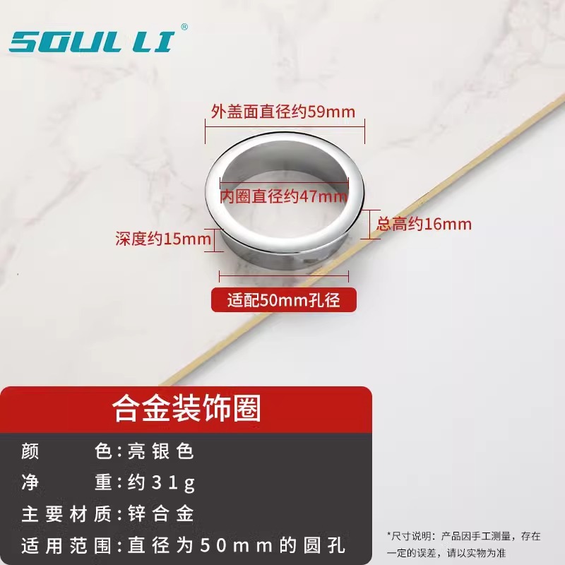 • 와이어 홀 커버 - 합금 장식 링 [브라이트 실버 50mm]