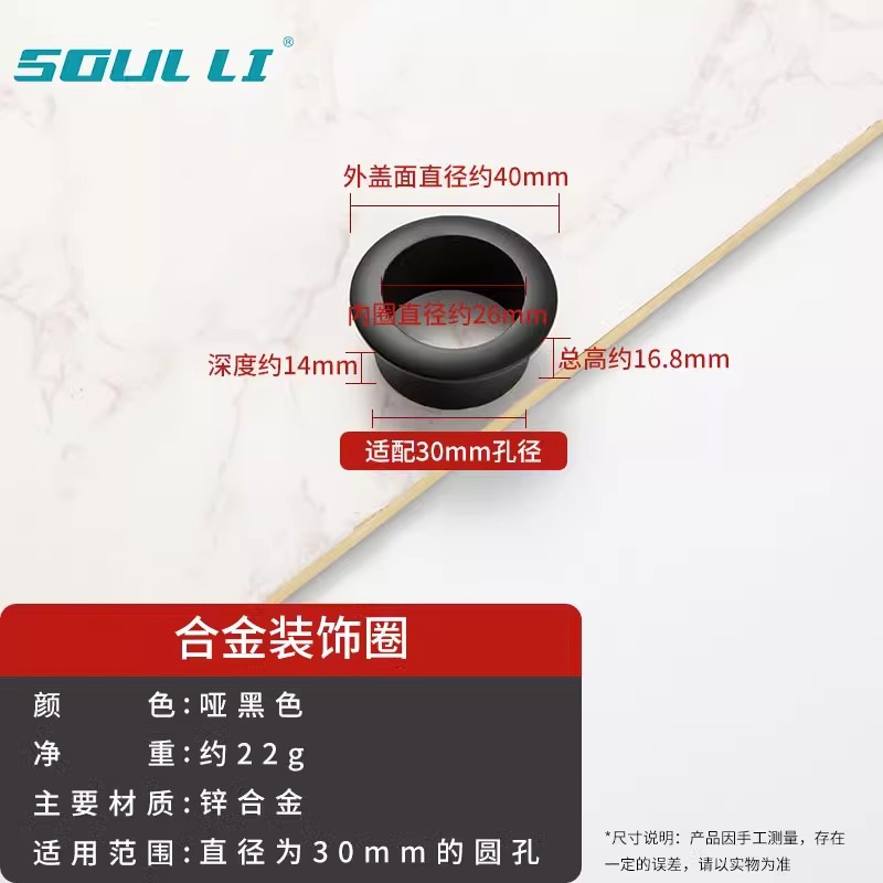 • 와이어 홀 커버 - 합금 장식 링 [매트 블랙 30mm]