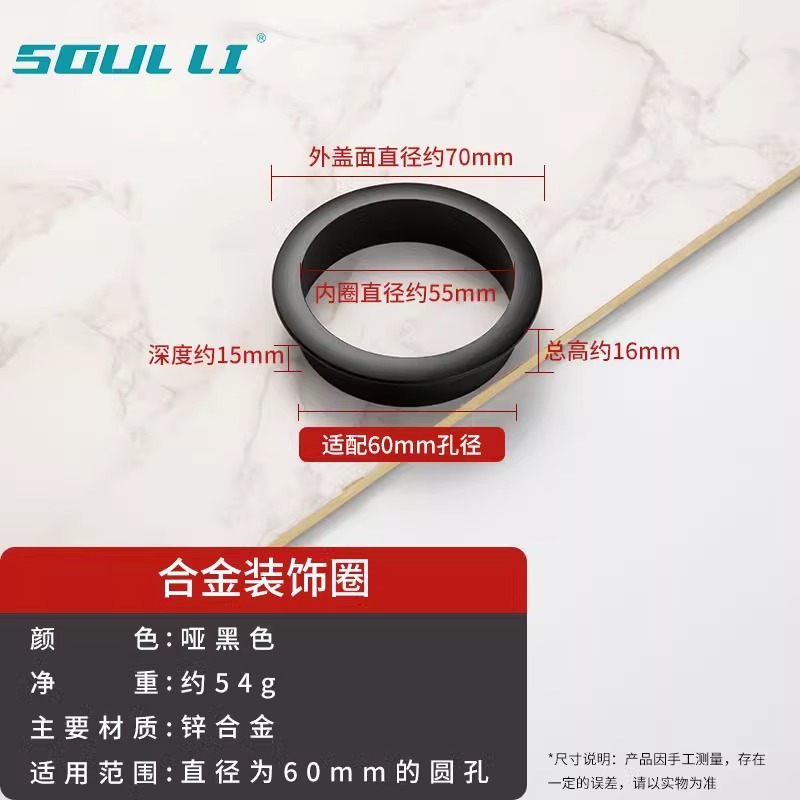 • 와이어 홀 커버 - 합금 장식 링 [매트 블랙 60mm]