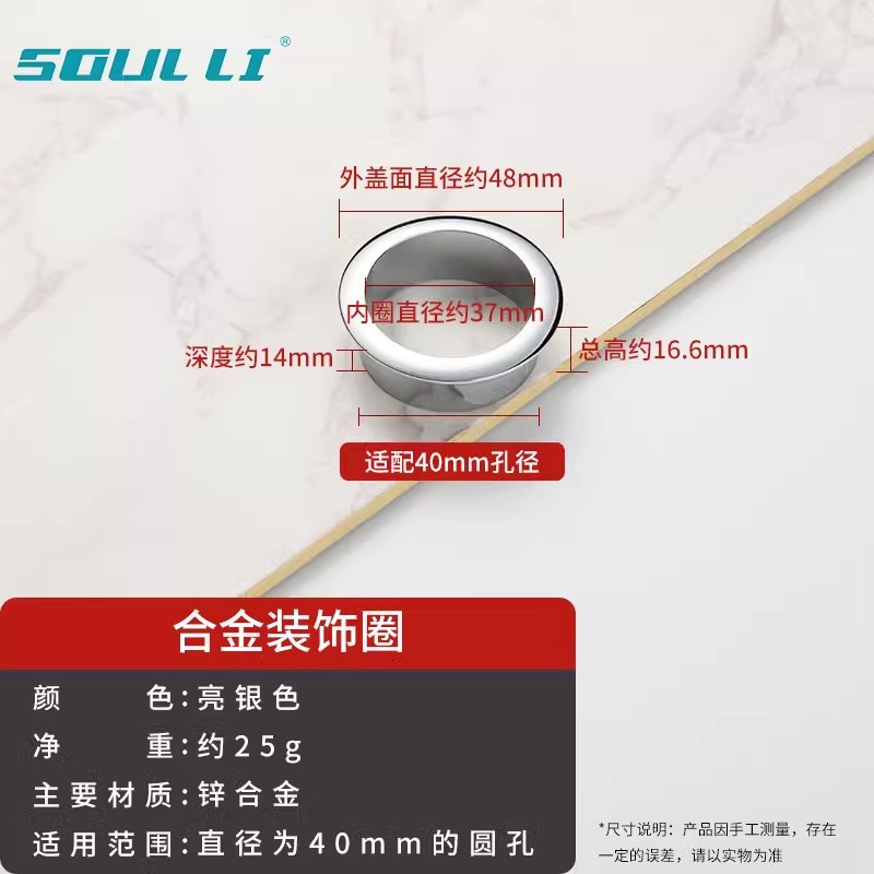 • 와이어 홀 커버 - 합금 장식 링 [브라이트 실버 40mm]