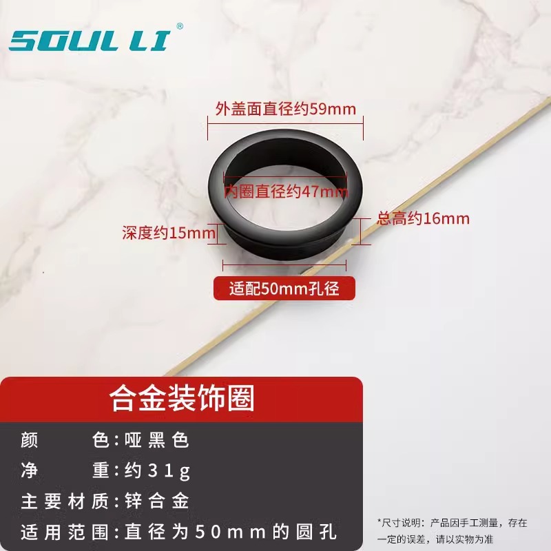 • 와이어 홀 커버 - 합금 장식 링 [매트 블랙 50mm]