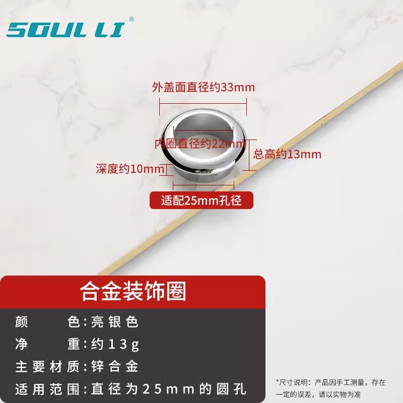 • 와이어 홀 커버 - 합금 장식 링 [브라이트 실버 25mm]