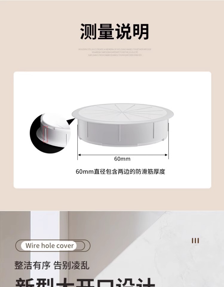 • 와이어 홀 커버 - 플라스틱 모델 [베이지 60mm]