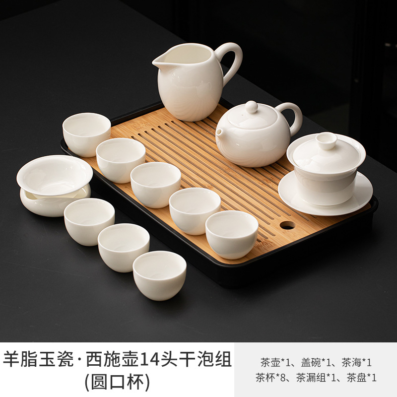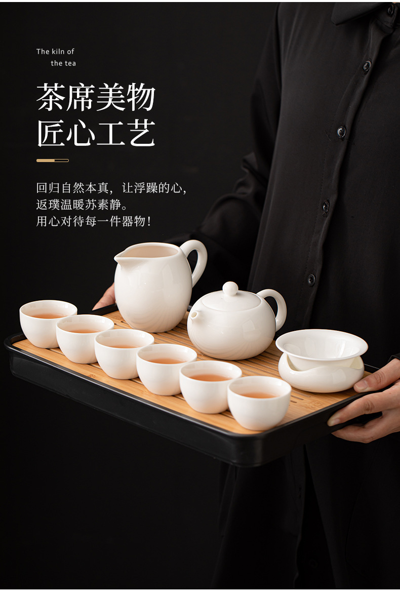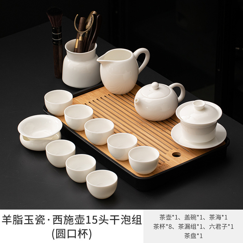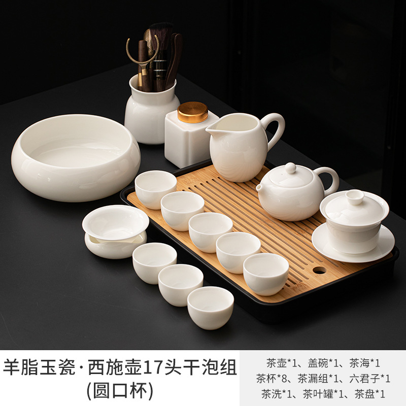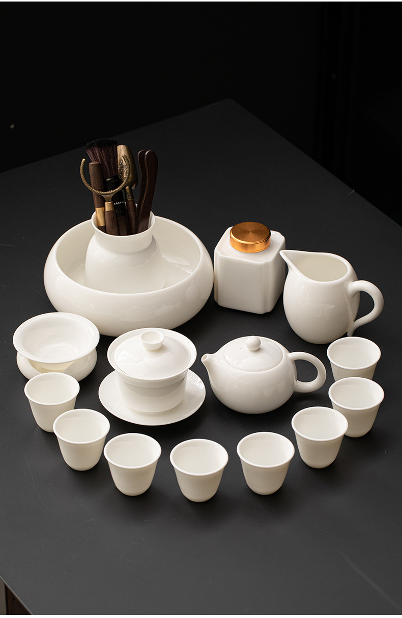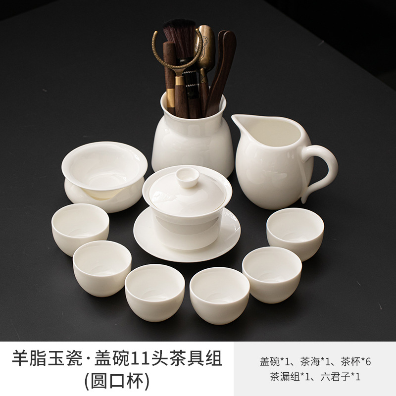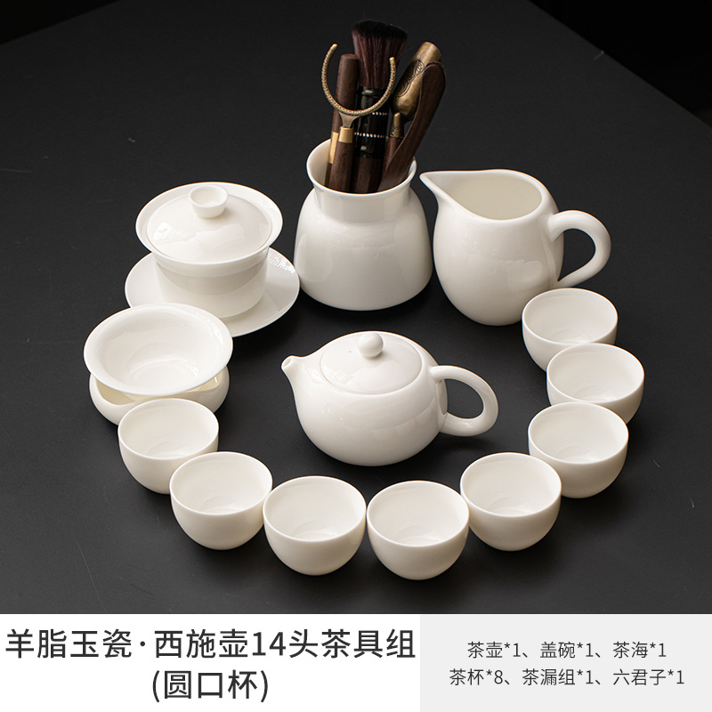 Met Jade Kung Fu Tea 세트 세트 홈 오피스 라이트 럭셔리 하이 엔드 티 포트 화이트 도자기 커버 보울 티 컵 티 트레이 방문스토어 가기