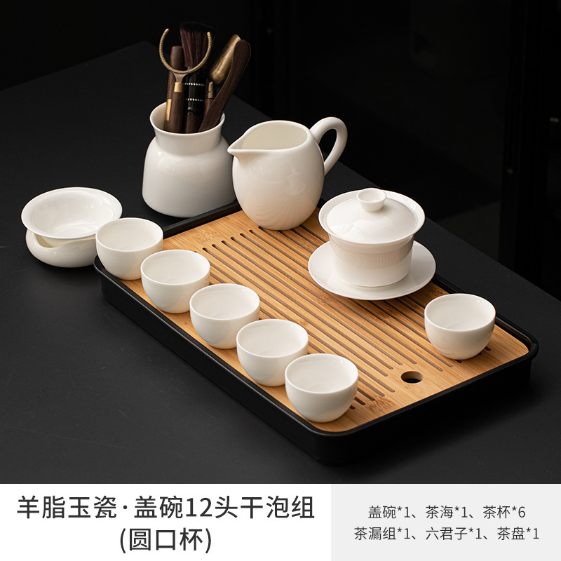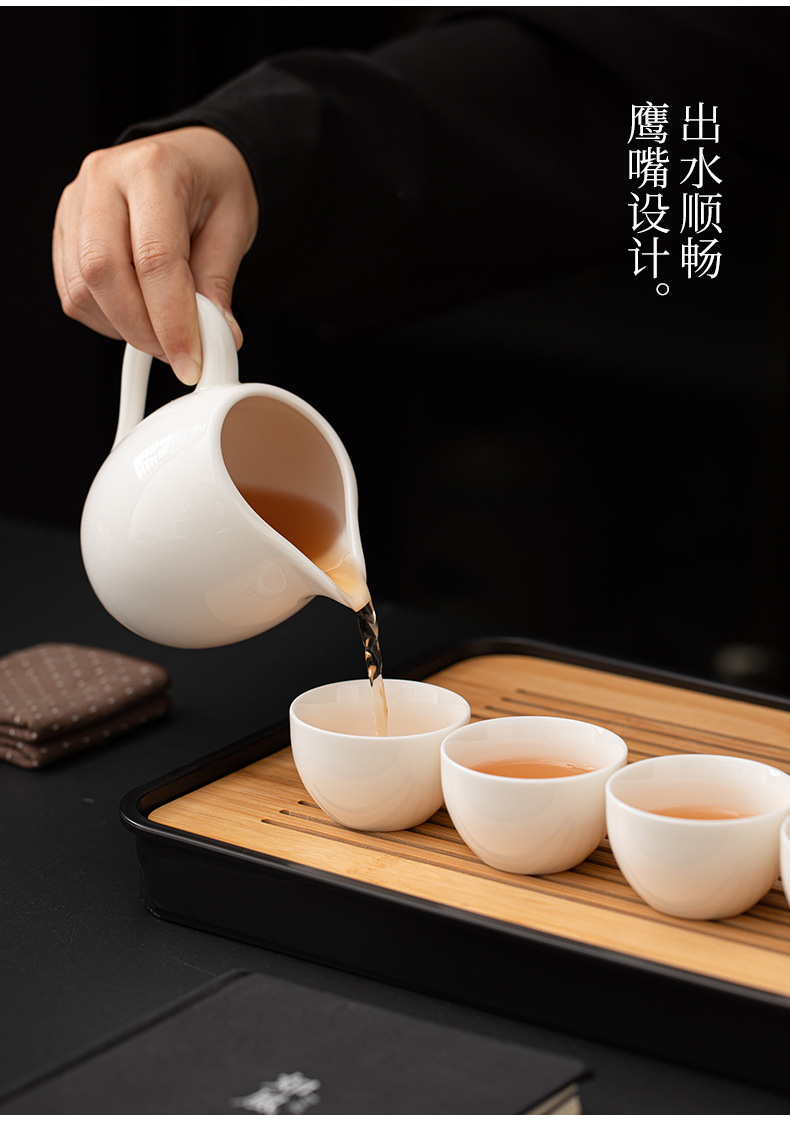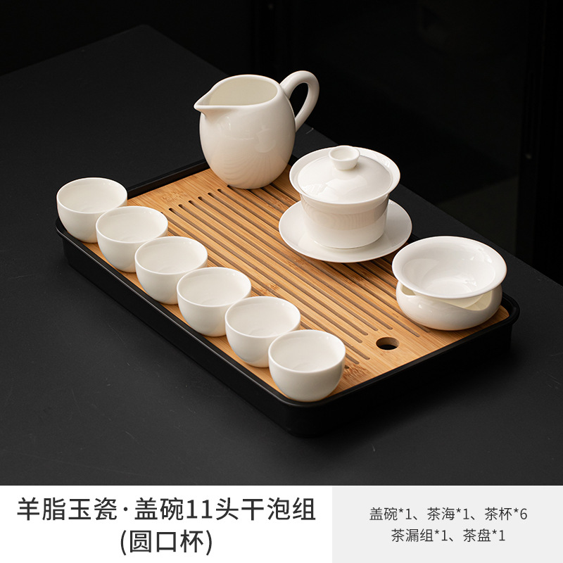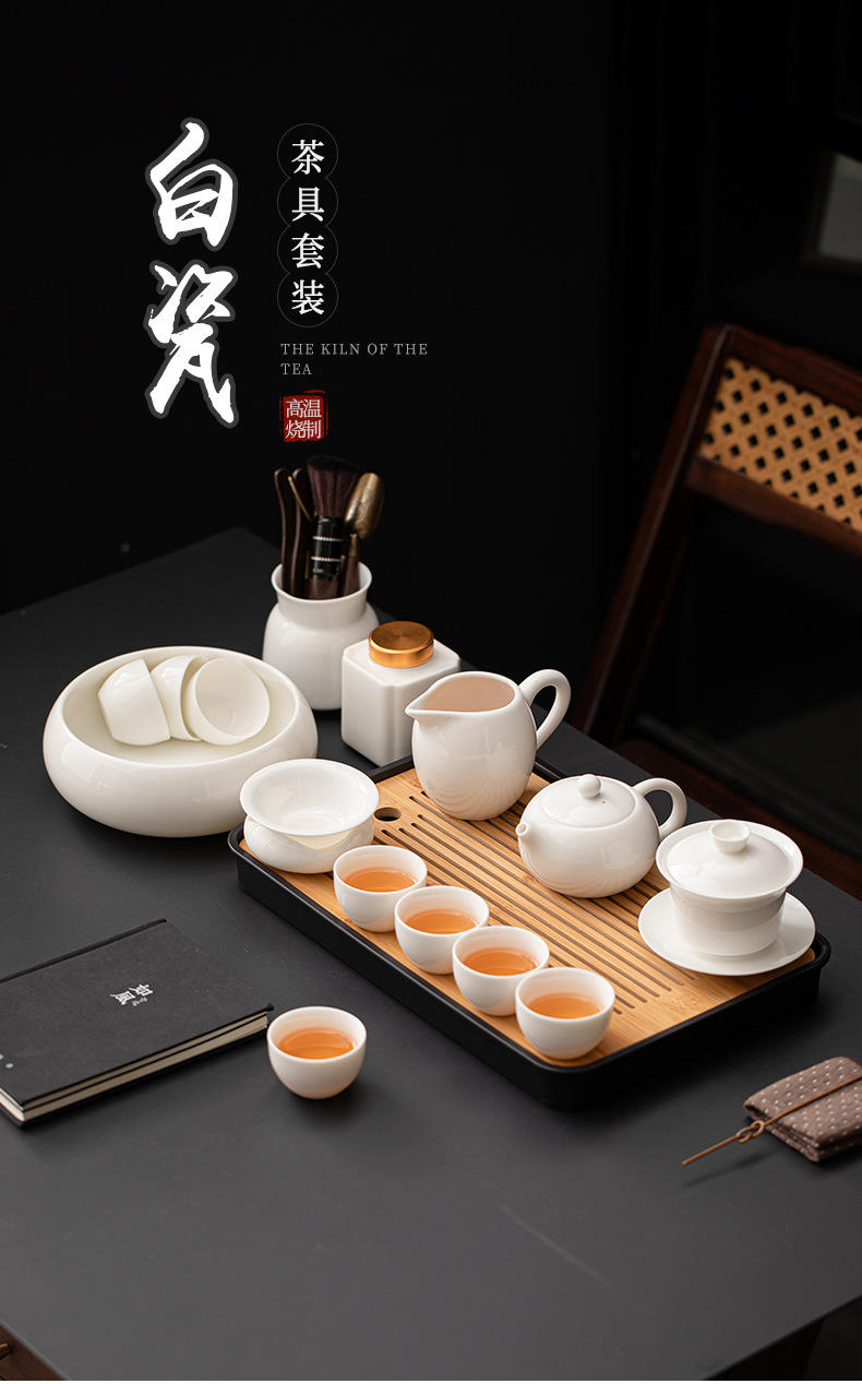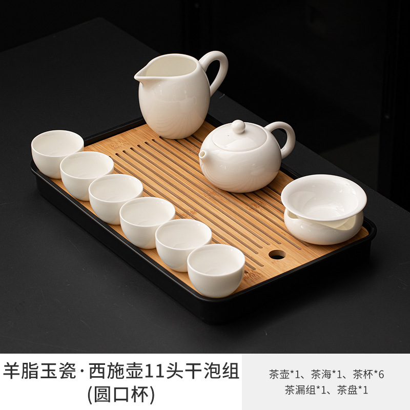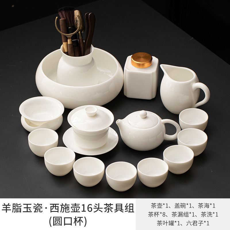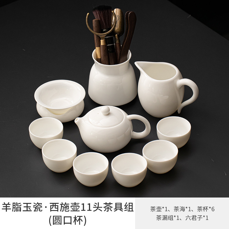 Met Jade Kung Fu Tea 세트 세트 홈 오피스 라이트 럭셔리 하이 엔드 티 포트 화이트 도자기 커버 보울 티 컵 티 트레이 방문스토어 가기