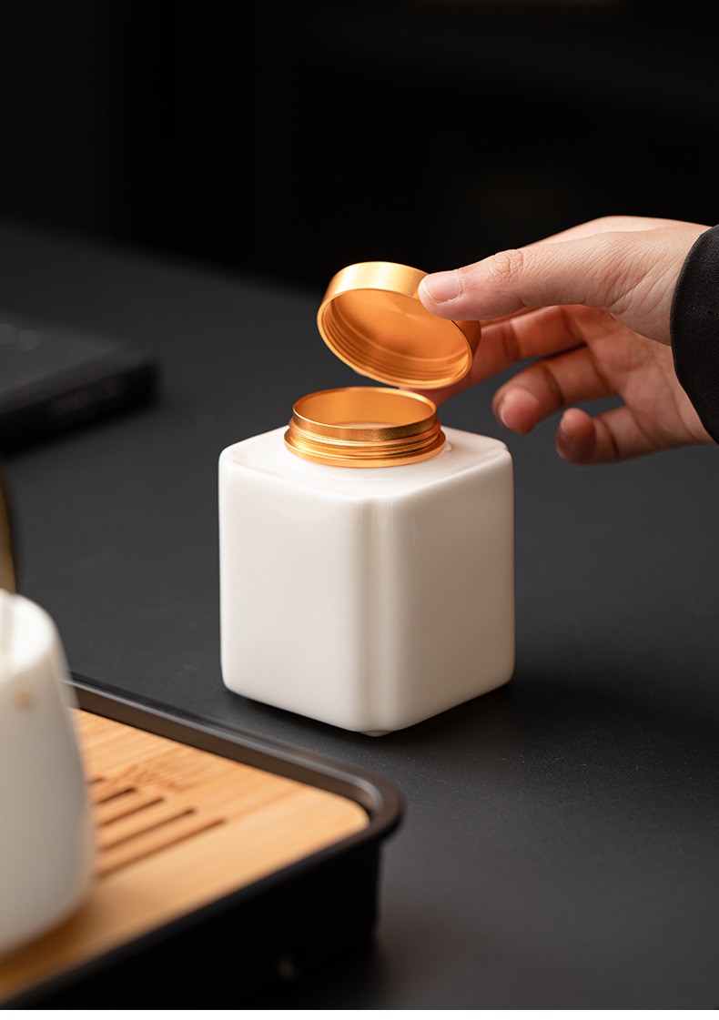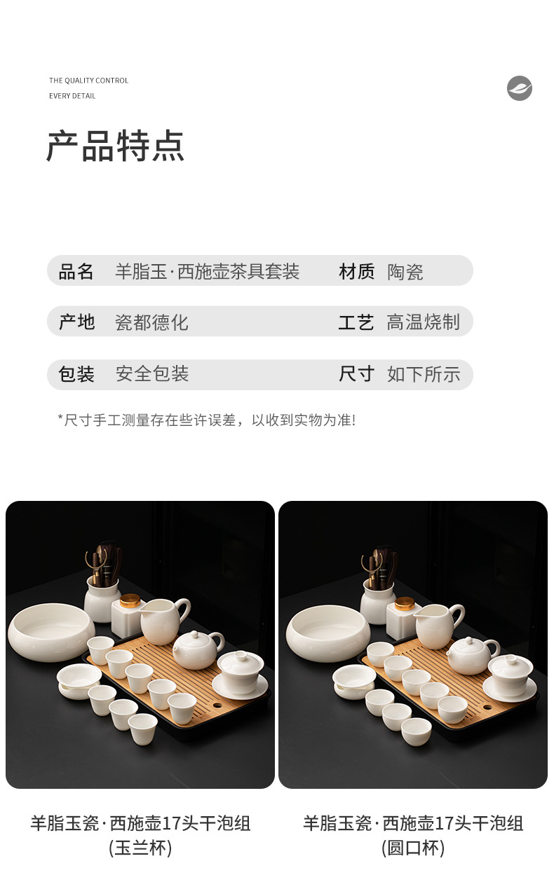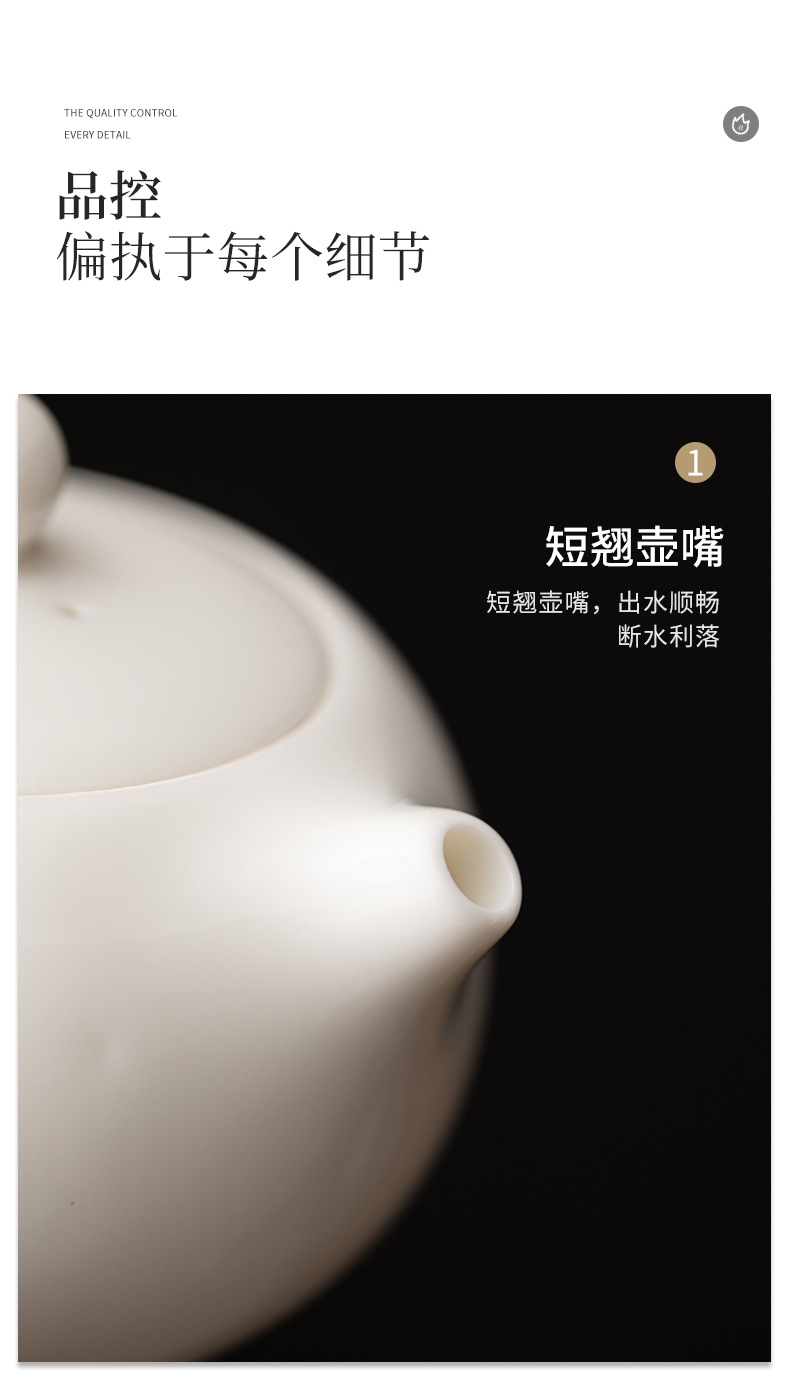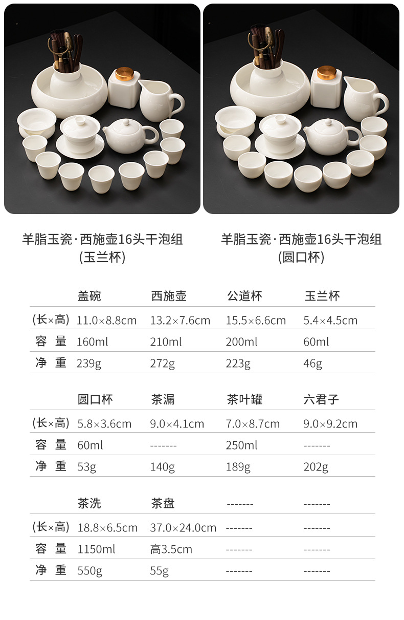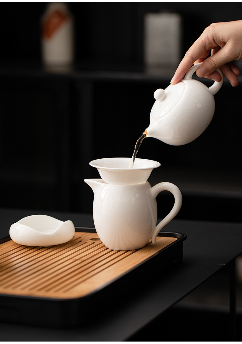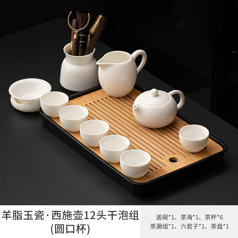 Met Jade Kung Fu Tea 세트 세트 홈 오피스 라이트 럭셔리 하이 엔드 티 포트 화이트 도자기 커버 보울 티 컵 티 트레이 방문스토어 가기