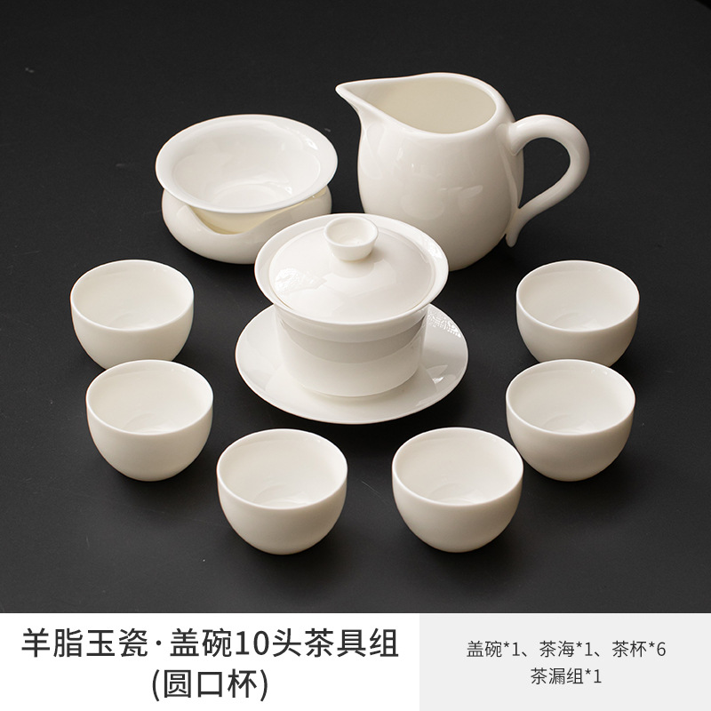 • 양고기 지방 옥 - 덮은 그릇 10개 세트 + 다도 [차 트레이 포함]