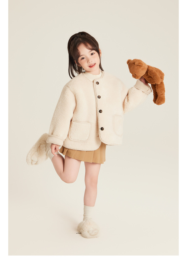 Amybaby Girls 'Top Winter 2024 새로운 간단한 반 높이 칼라 솔리드 컬러 버튼 니트 긴팔 베이스 셔츠