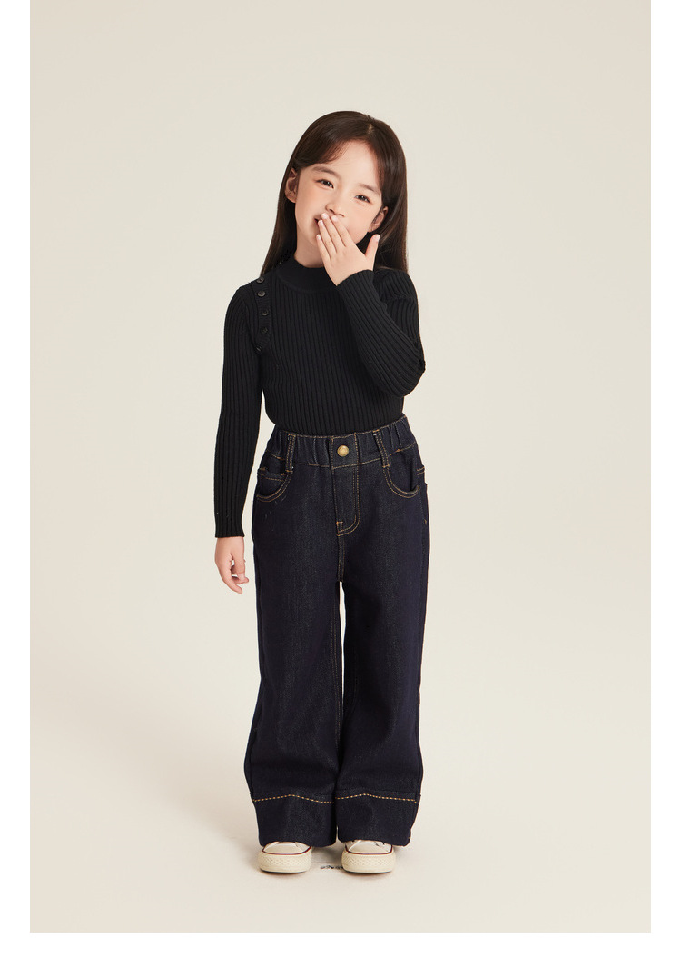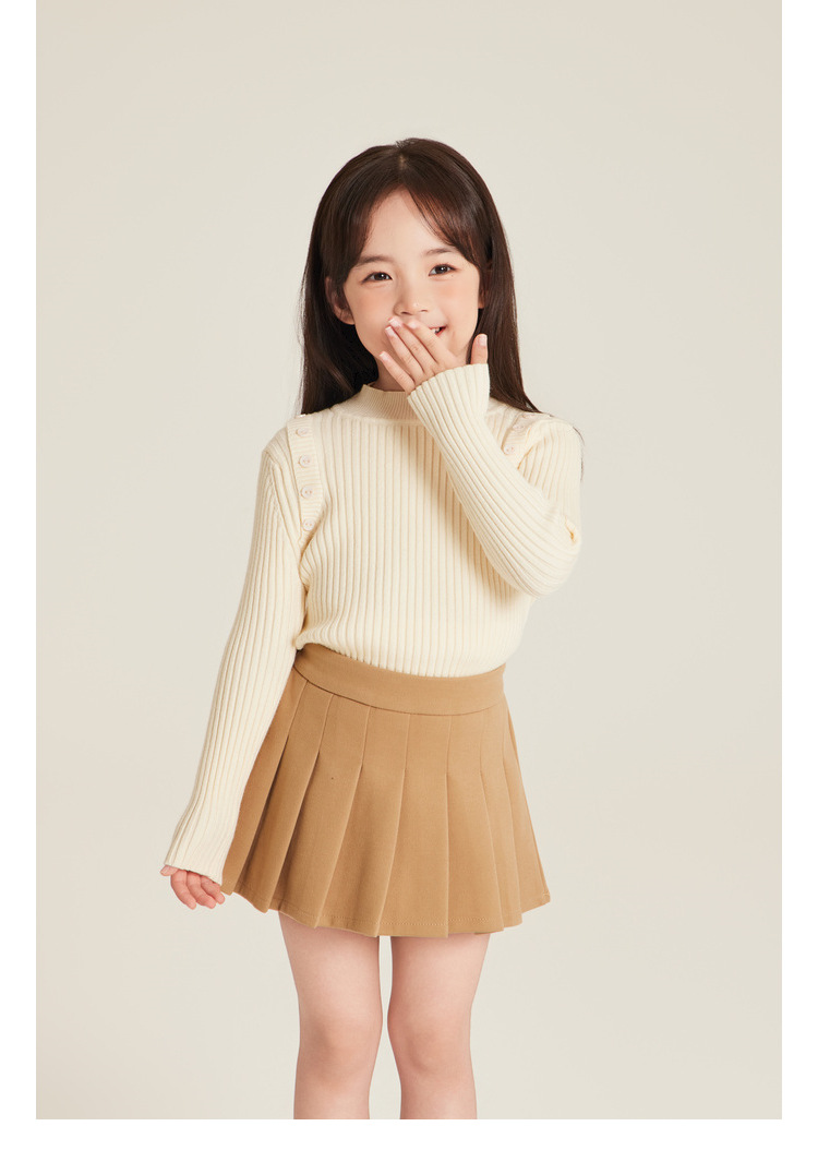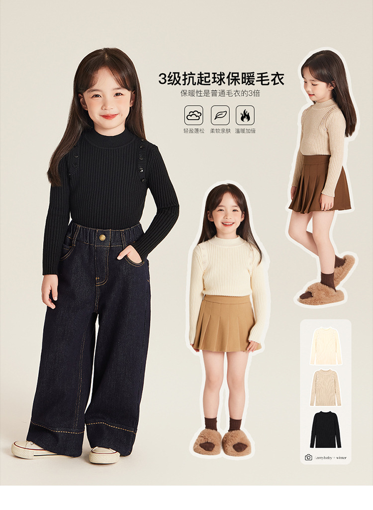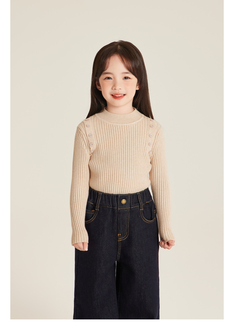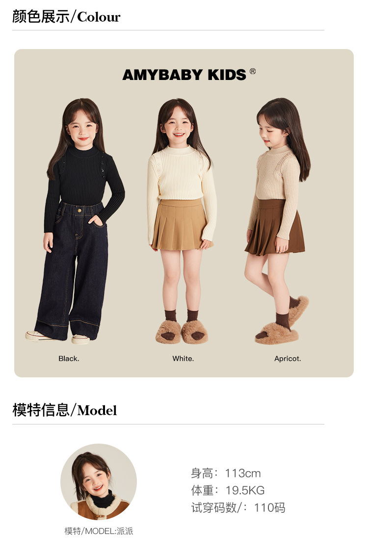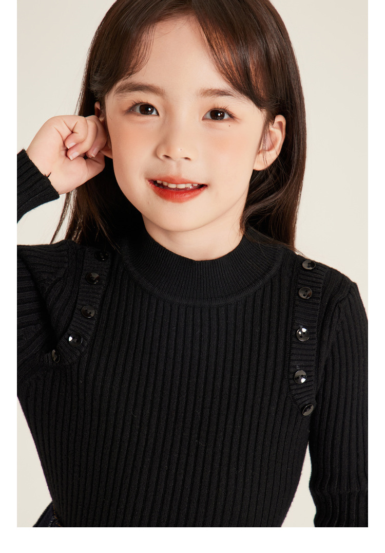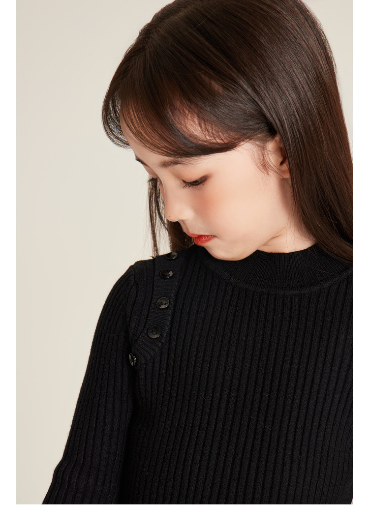 Amybaby Girls 'Top Winter 2024 새로운 간단한 반 높이 칼라 솔리드 컬러 버튼 니트 긴팔 베이스 셔츠스토어 가기