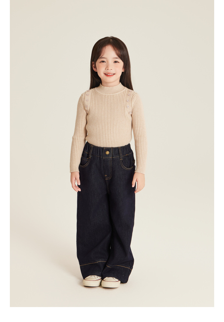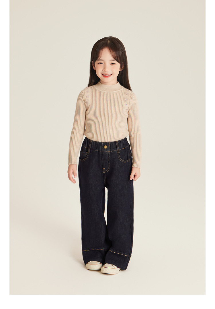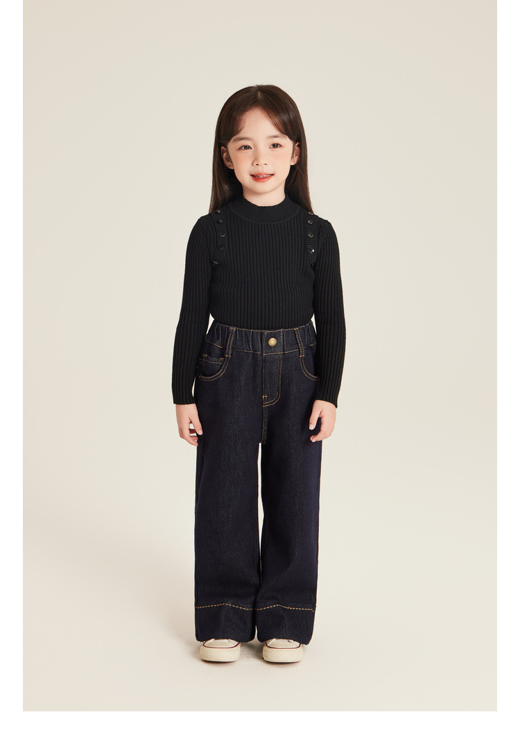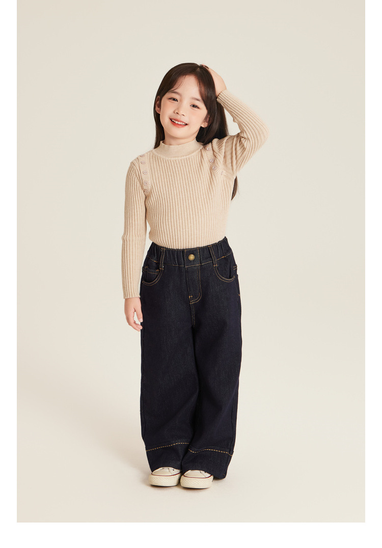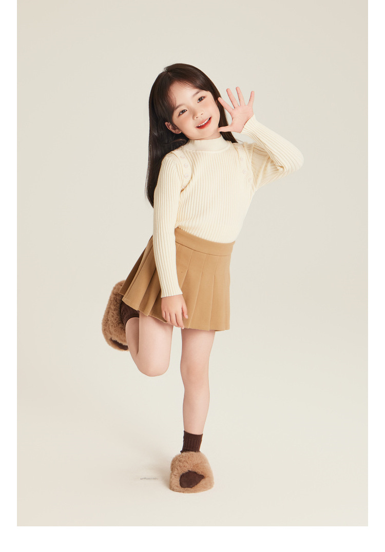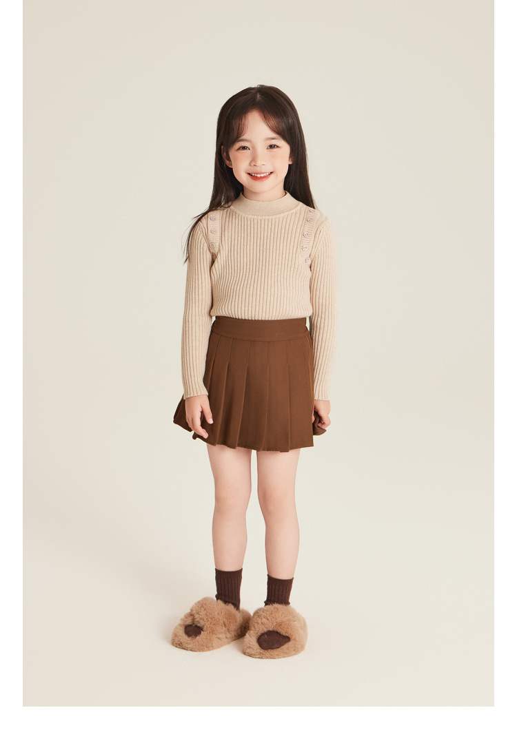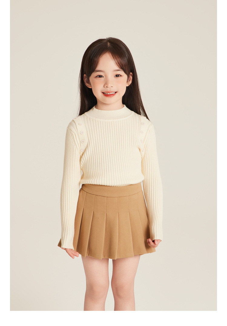 Amybaby Girls 'Top Winter 2024 새로운 간단한 반 높이 칼라 솔리드 컬러 버튼 니트 긴팔 베이스 셔츠스토어 가기
