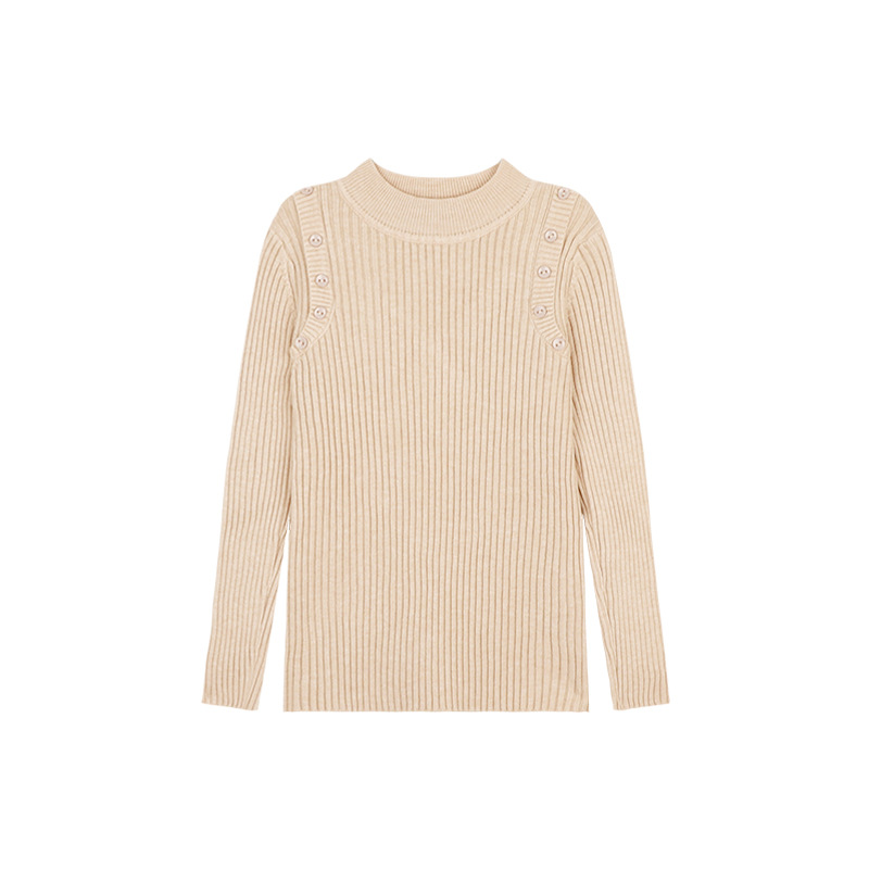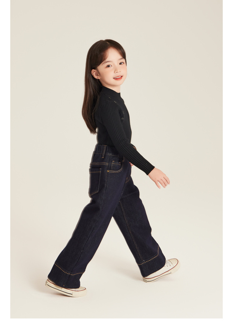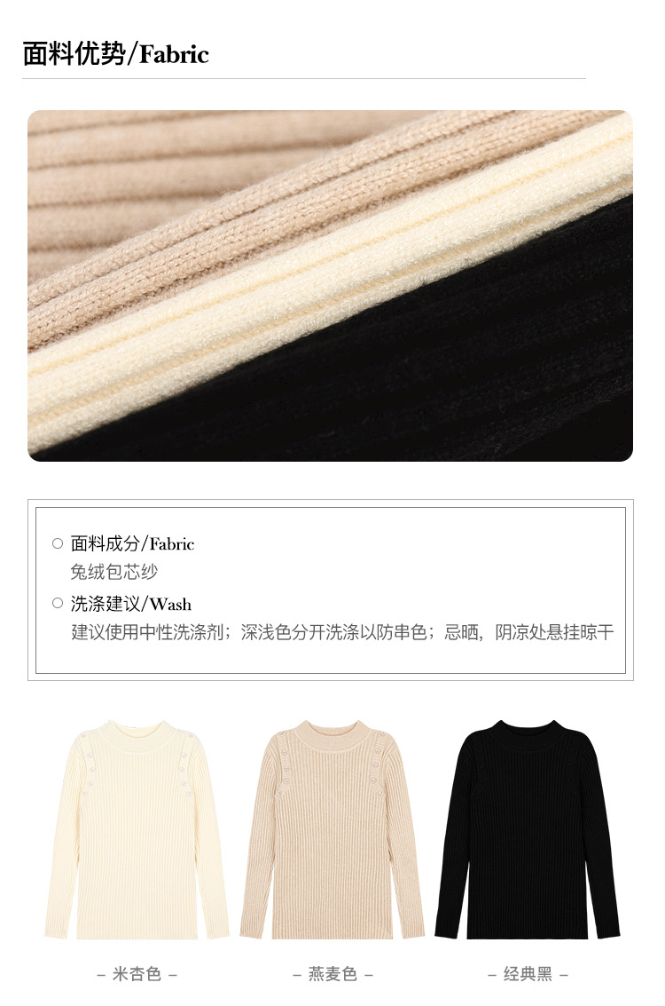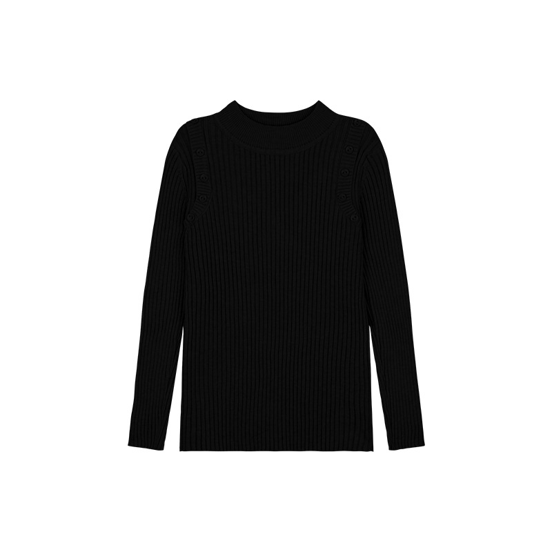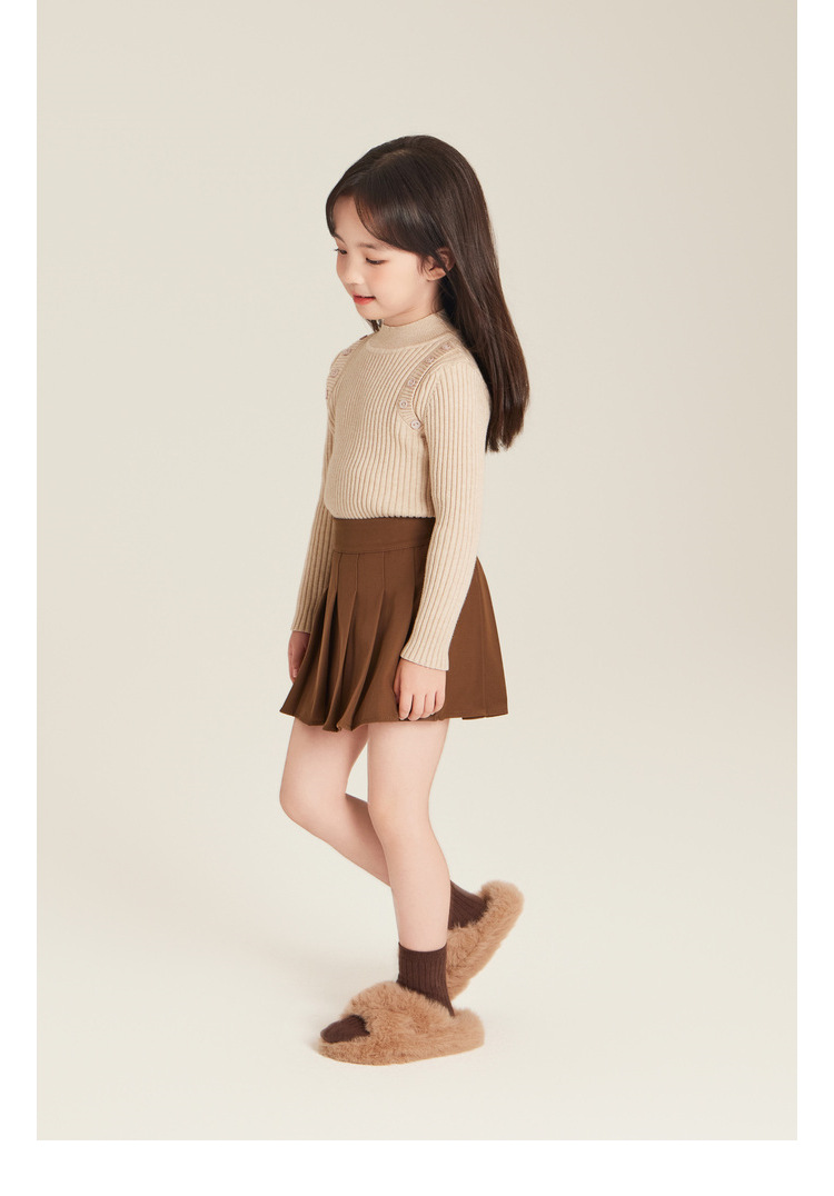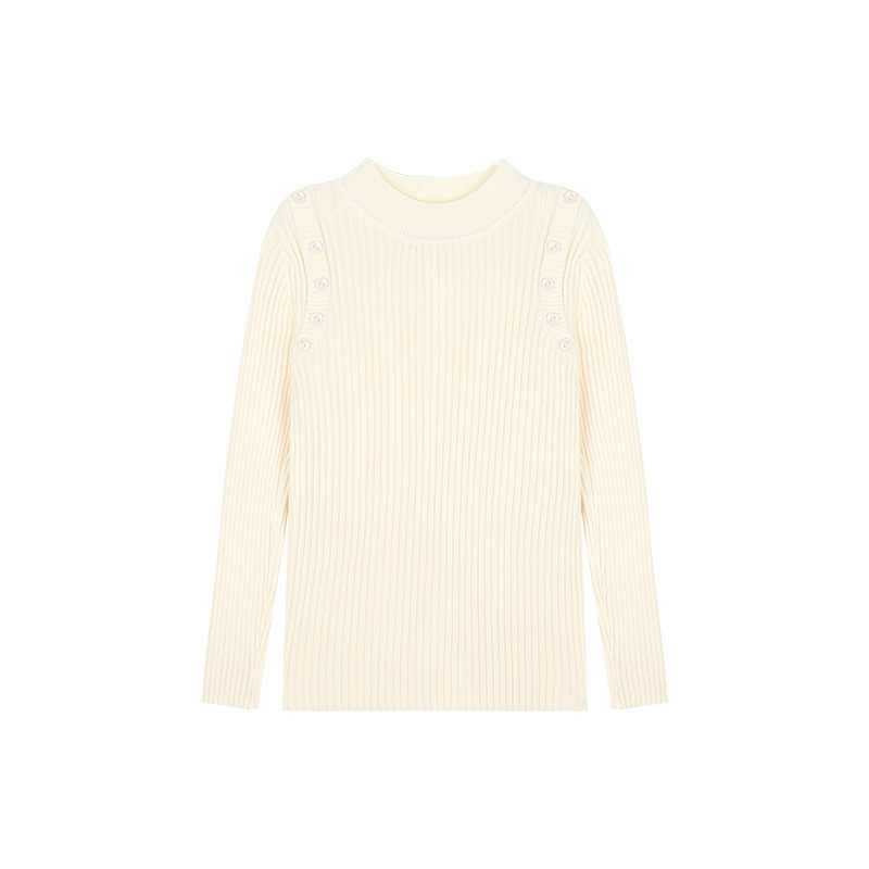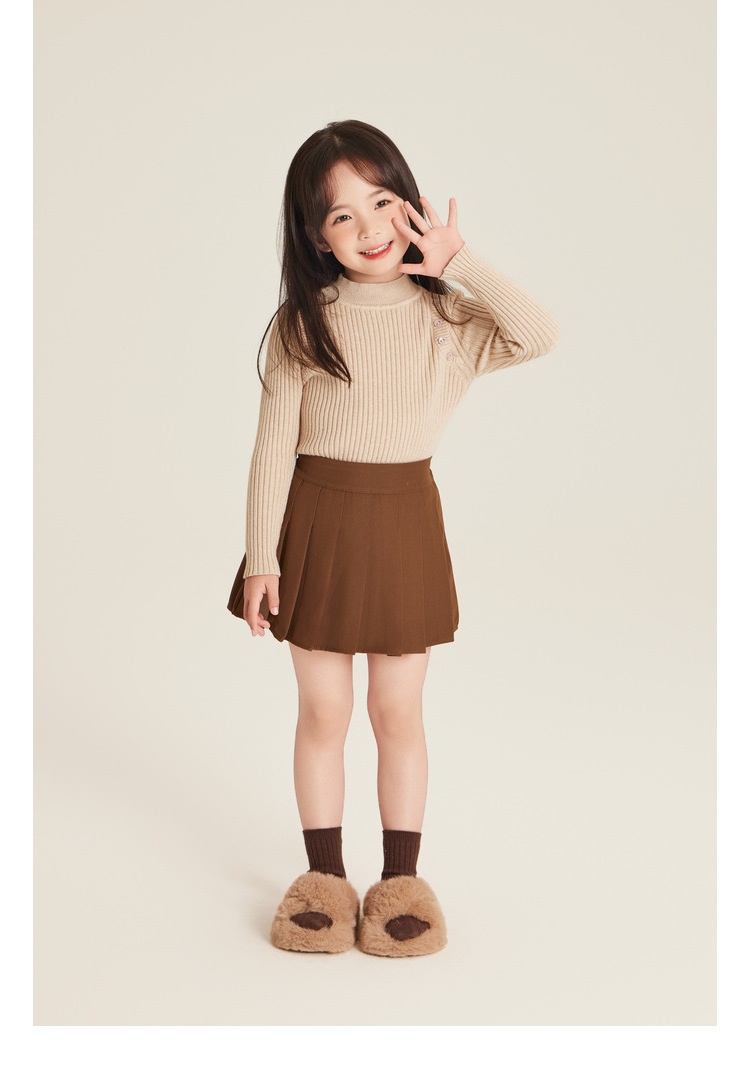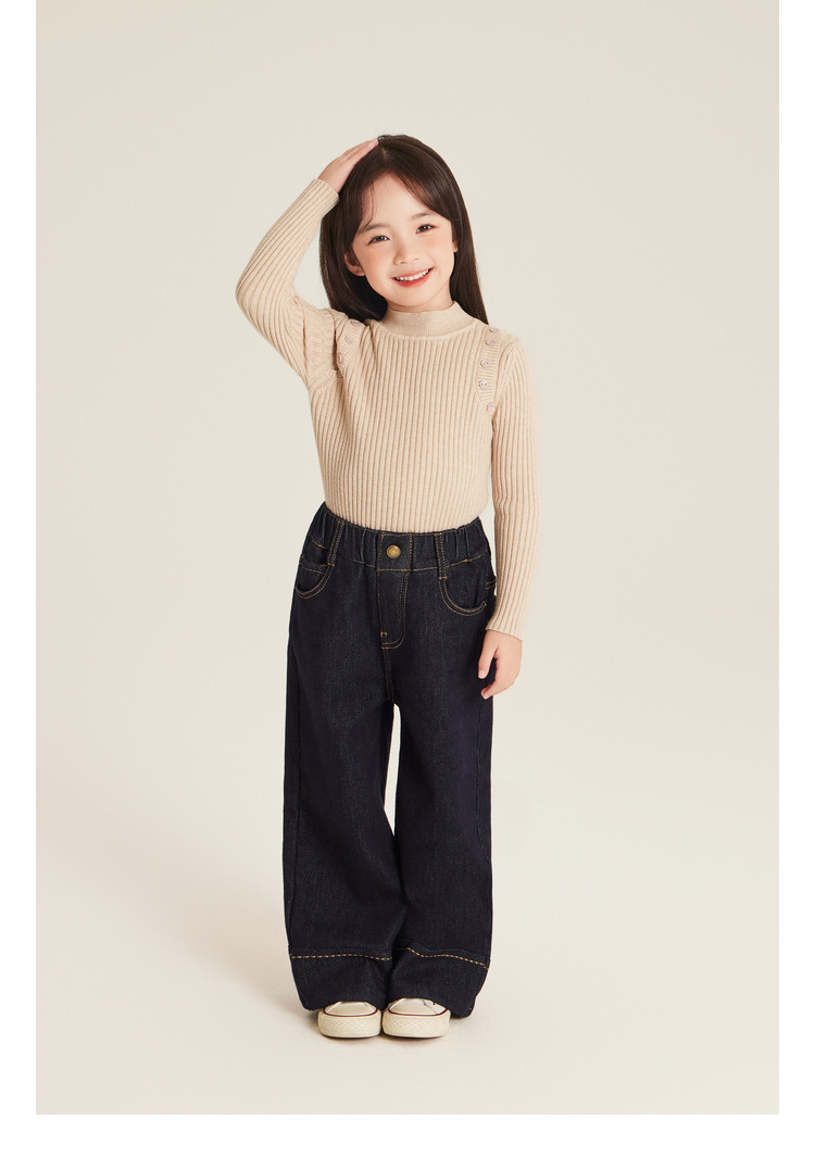 Amybaby Girls 'Top Winter 2024 새로운 간단한 반 높이 칼라 솔리드 컬러 버튼 니트 긴팔 베이스 셔츠스토어 가기