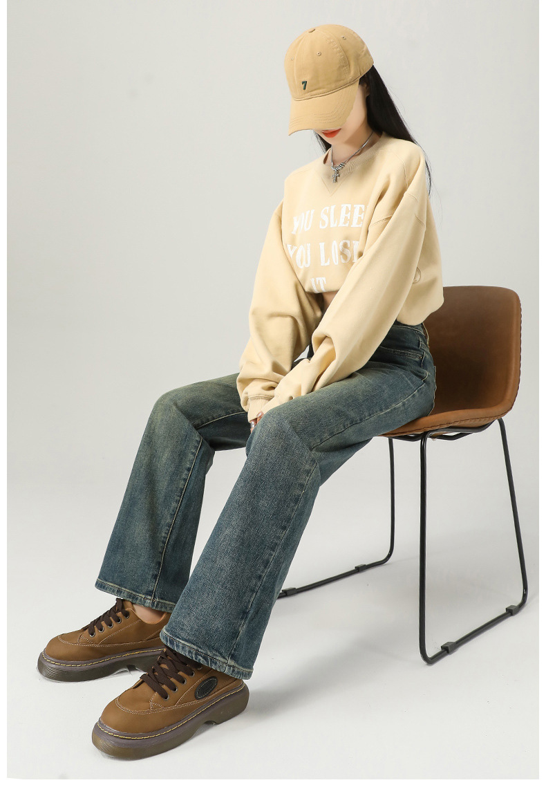 시멘트 회색 청바지 여성의 가을과 겨울 2024 가을 새로운 봄과 가을 좁은 판 스트레이트 다리 바지스토어 가기