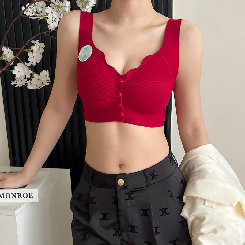 Tracless 속옷 플러스 사이즈 통통녀 폭발성 스레드 게으른 앞 오프닝 버클 풀 얇은 푸시 업 Rimless Vest Bra