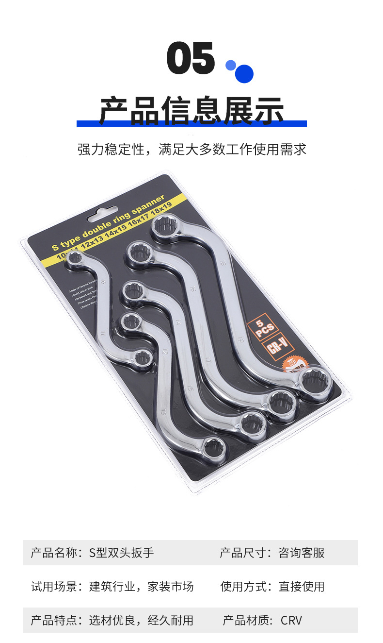 S형 렌치 5종 세트 특수형 12각 조합 고정 헤드 양방향 만능 곡선 핸들 플라워 렌치 풀세트 자동차 수리 도구스토어 가기