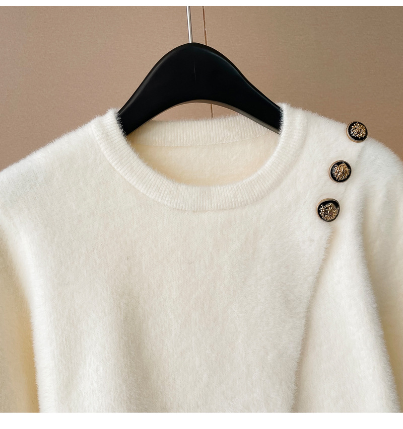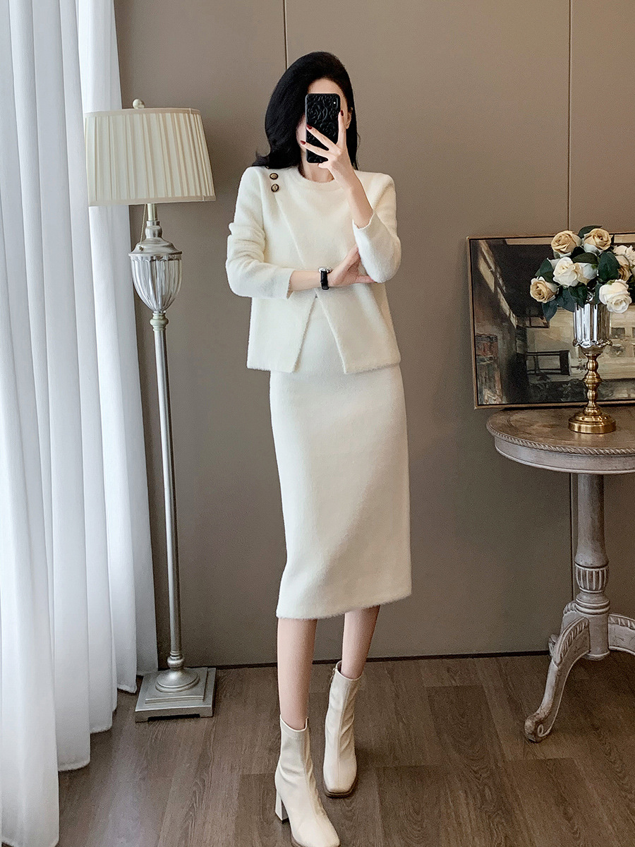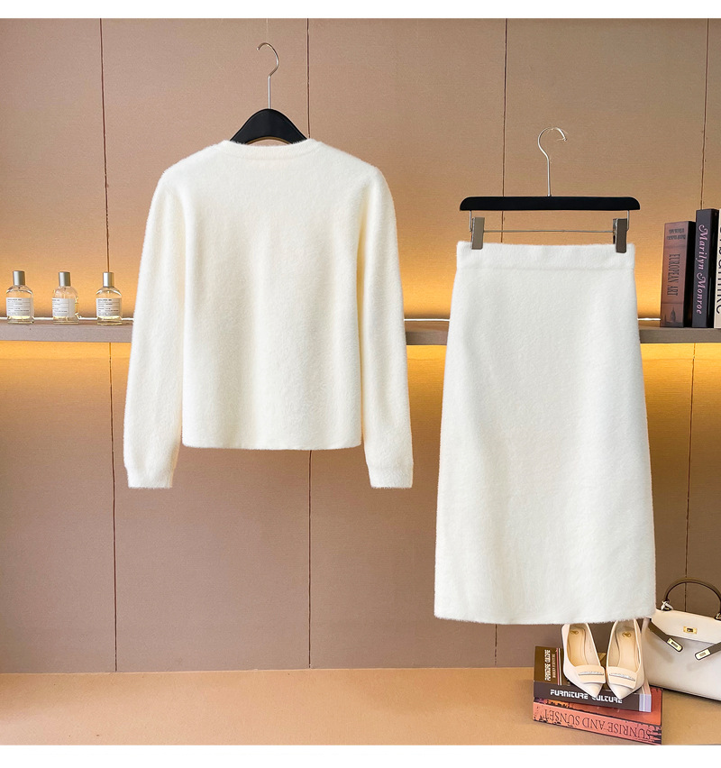 2024 새로운 니트 밍크 헤어 캐주얼 패션 세트 긴 소매 오픈 디자인 센스 여성 최고 스웨터 세트스토어 가기