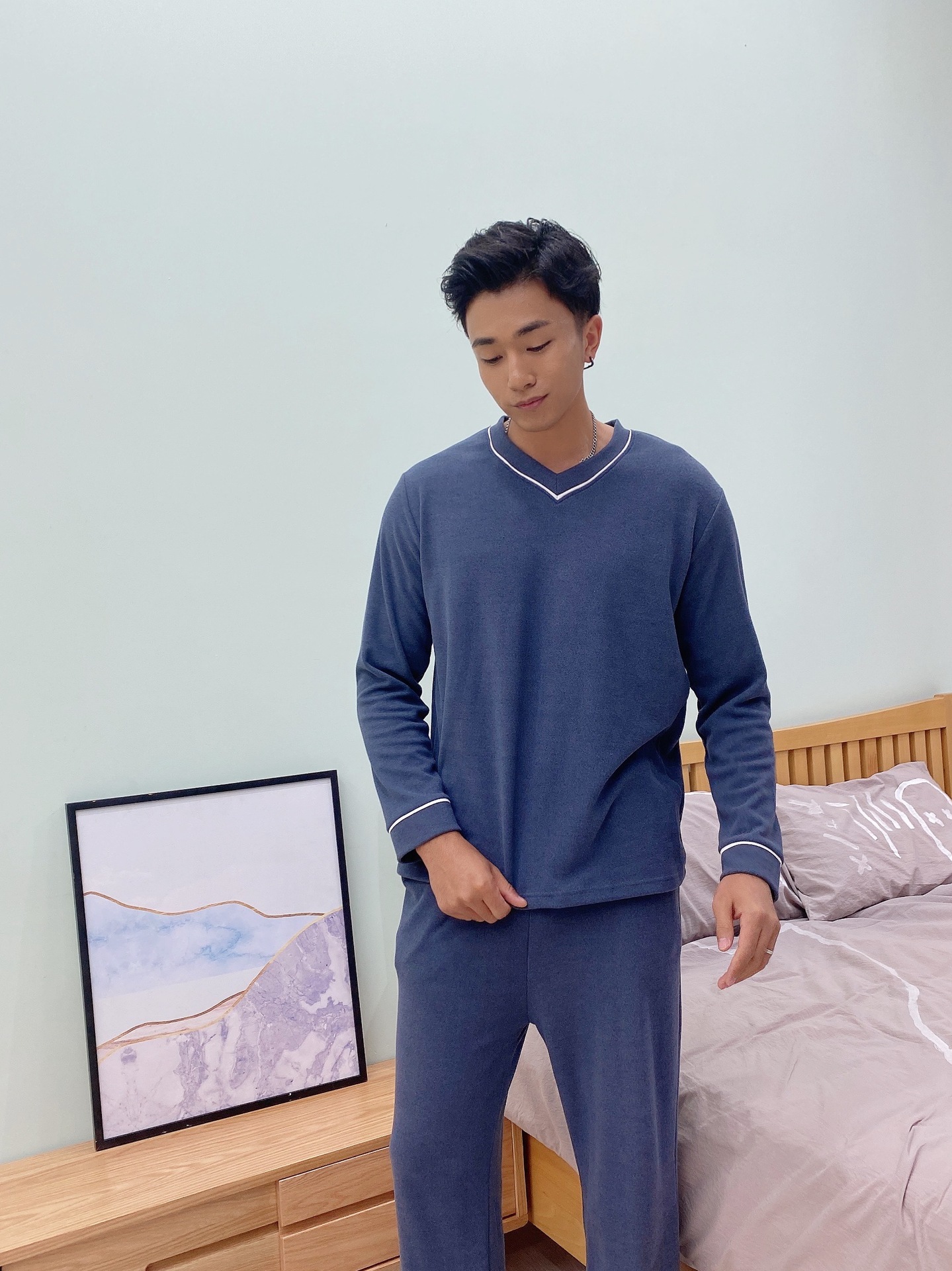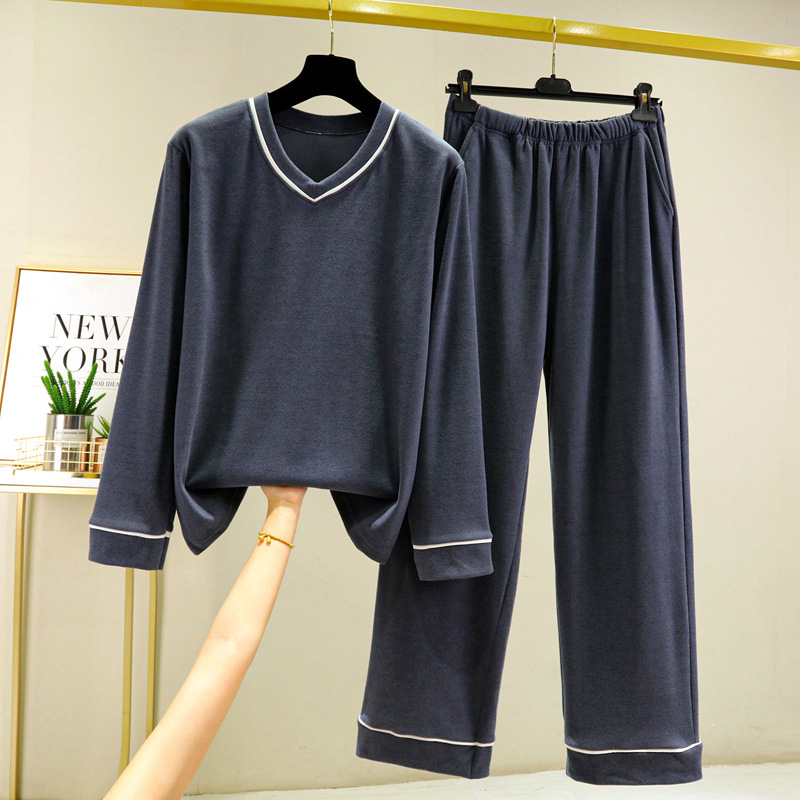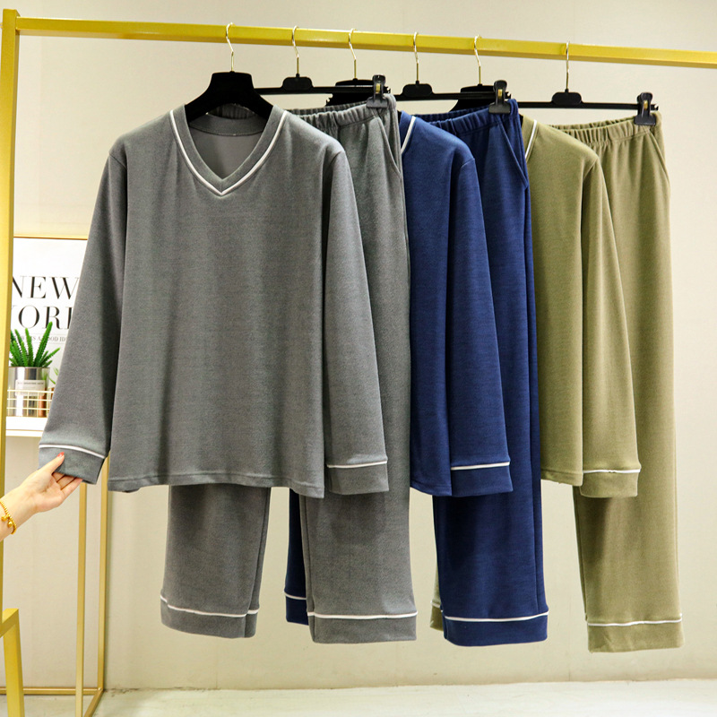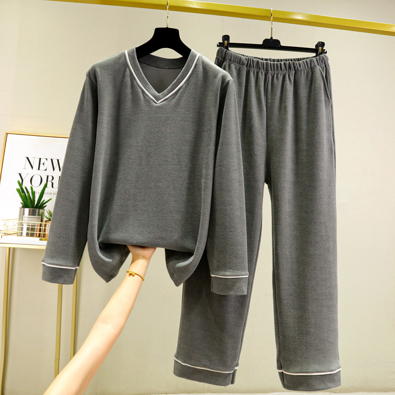 독일 벨벳 따뜻한 플러스 사이즈 홈 옷 가을과 겨울 긴 소매 두꺼운 남자 잠옷 세트 한국식 봄과 가을 착용스토어 가기
