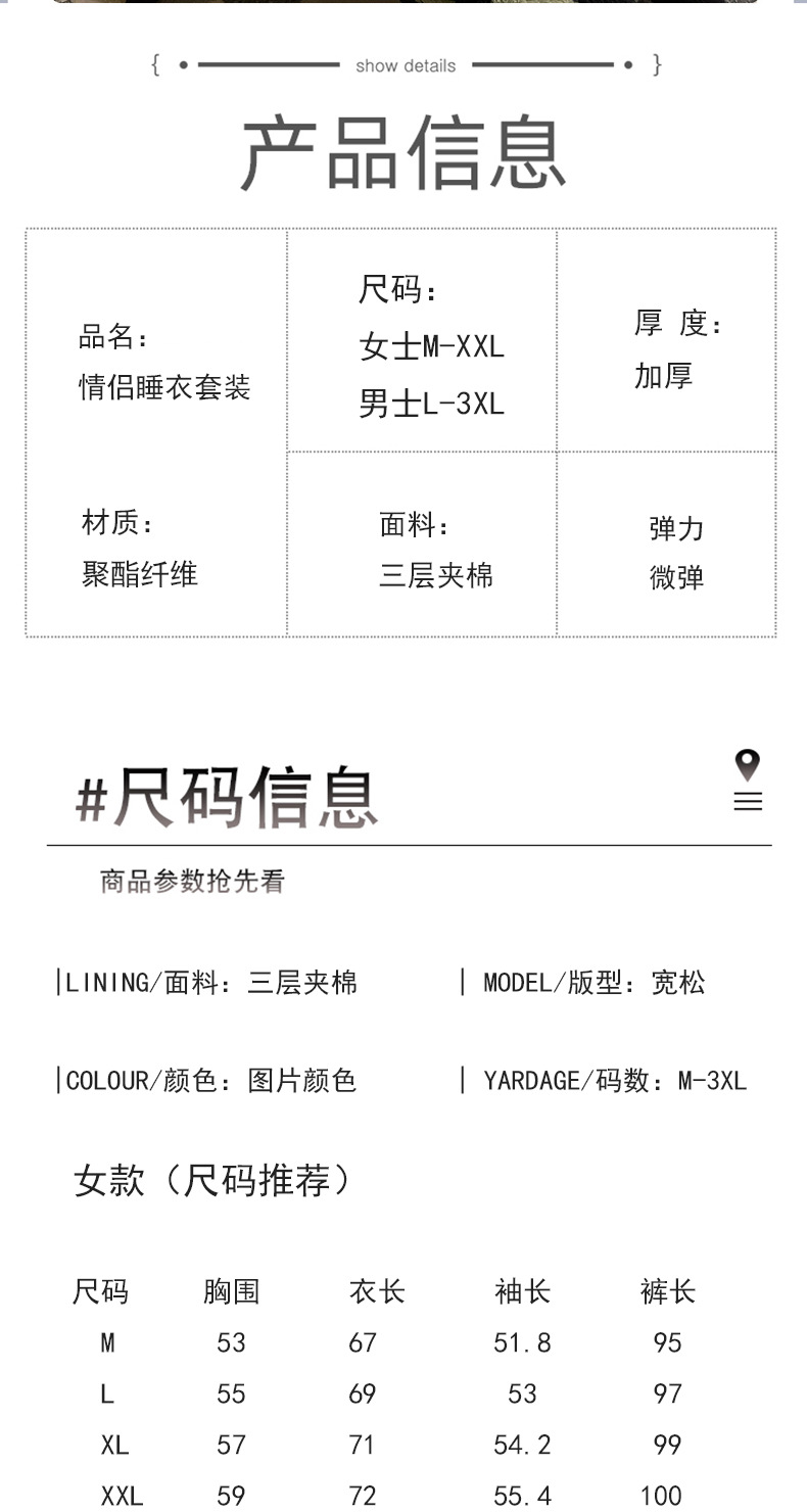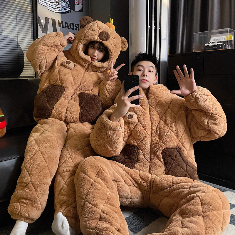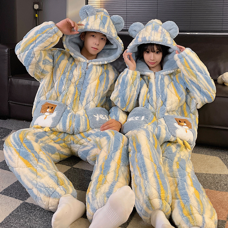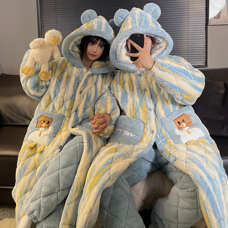 엄선된 3겹 두꺼운 누빔 커플 잠옷 여성용 겨울 신상 만화 카라 가디건 남성용 홈웨어 세트스토어 가기