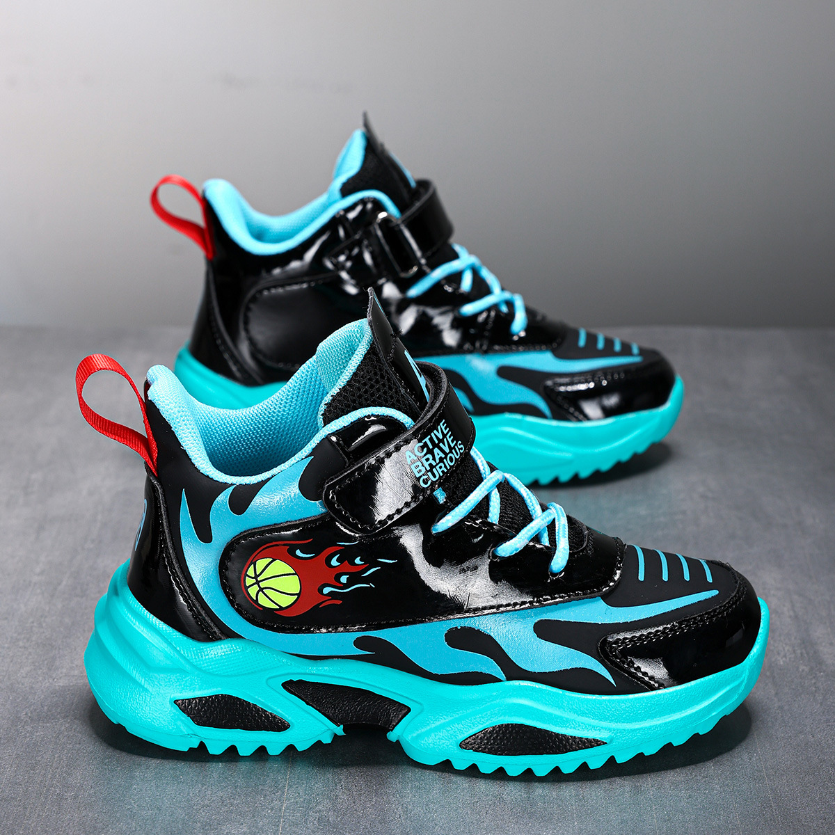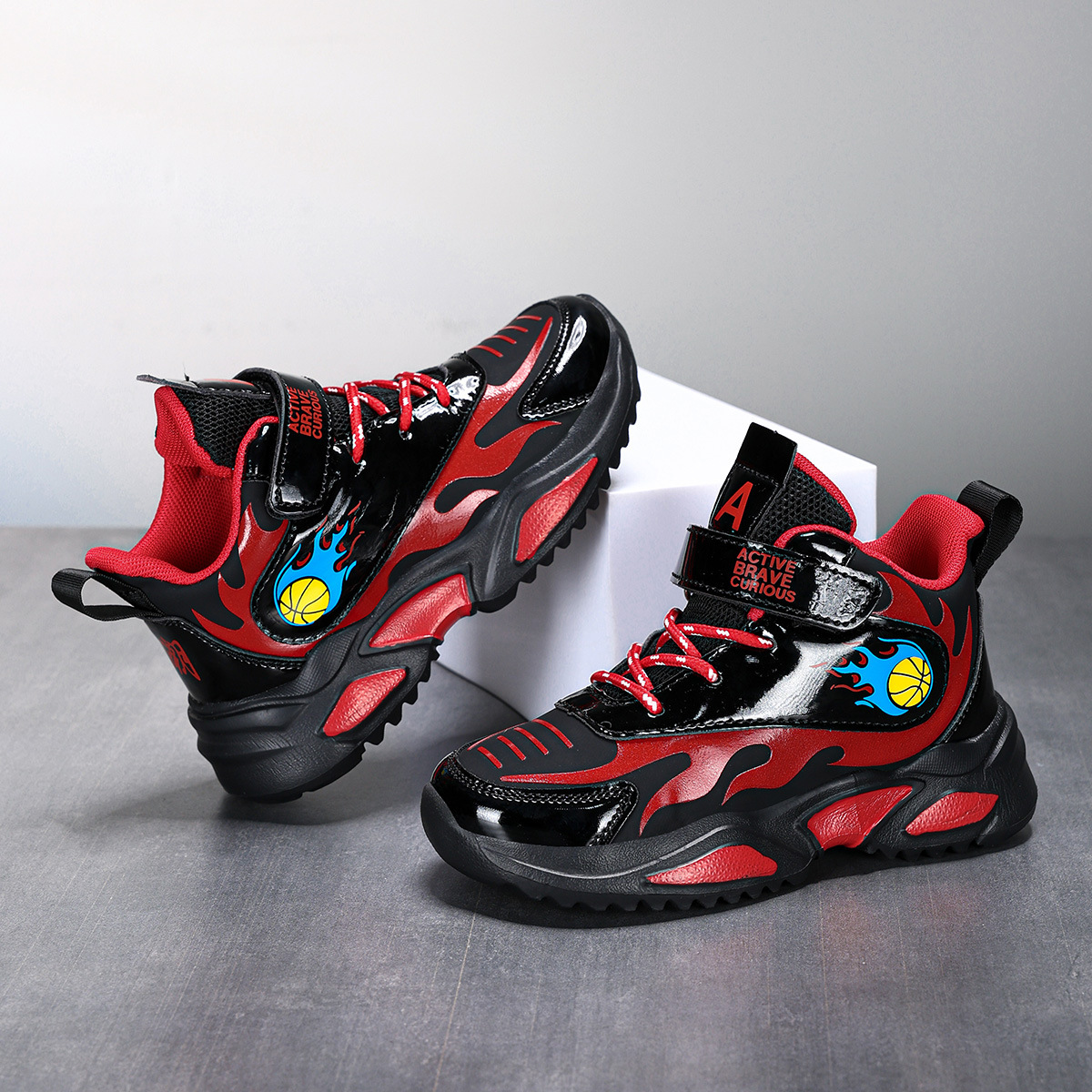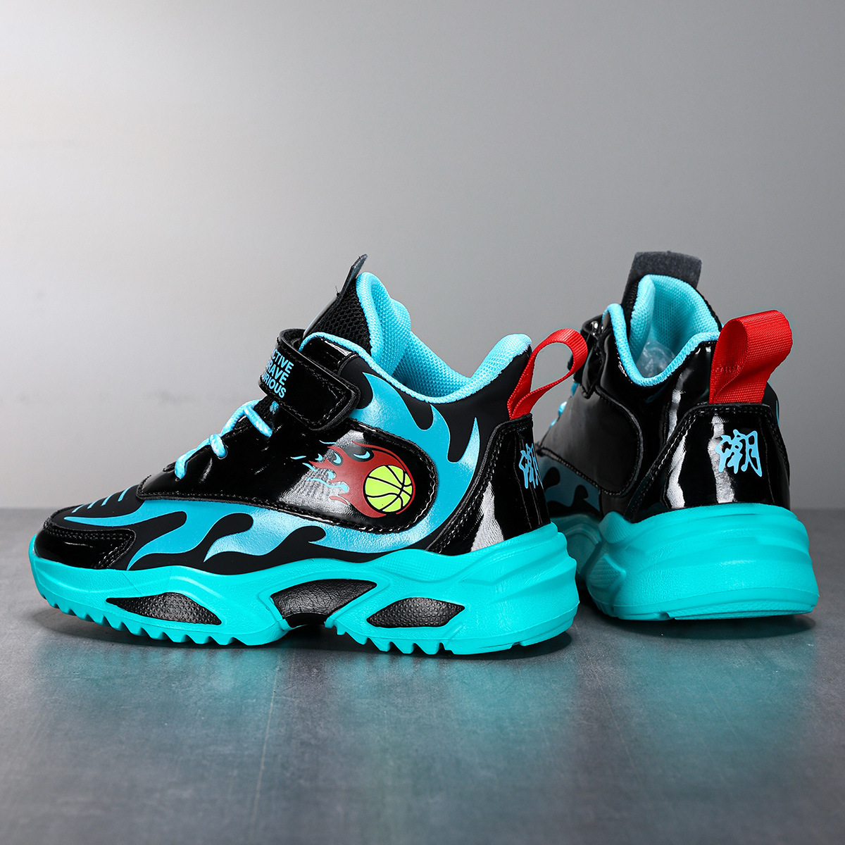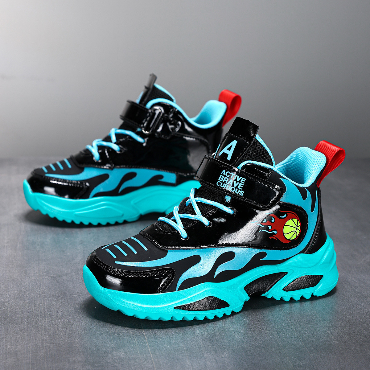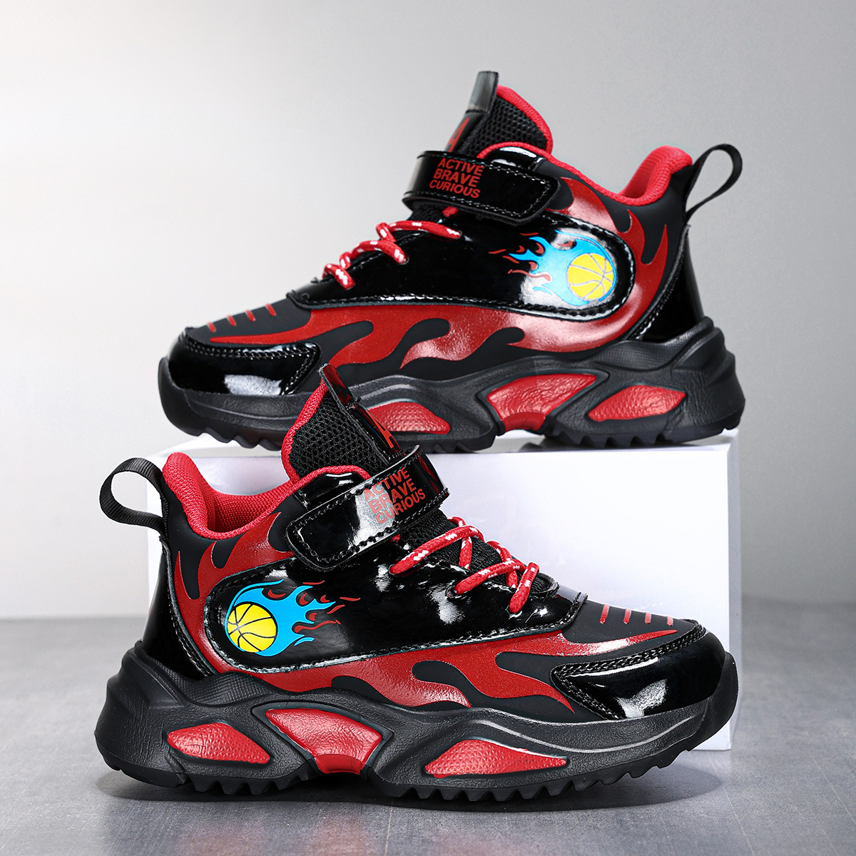 농구 신발 벨크로 통기성 야외 가죽 소년 신발 새로운 큰 어린이 2025 유행 캐주얼 스포츠 신발스토어 가기