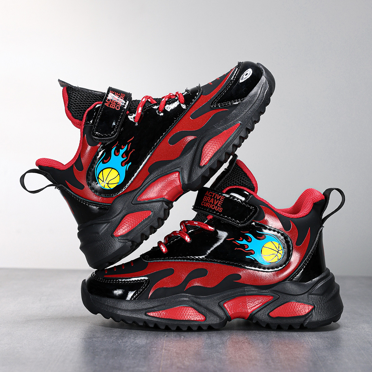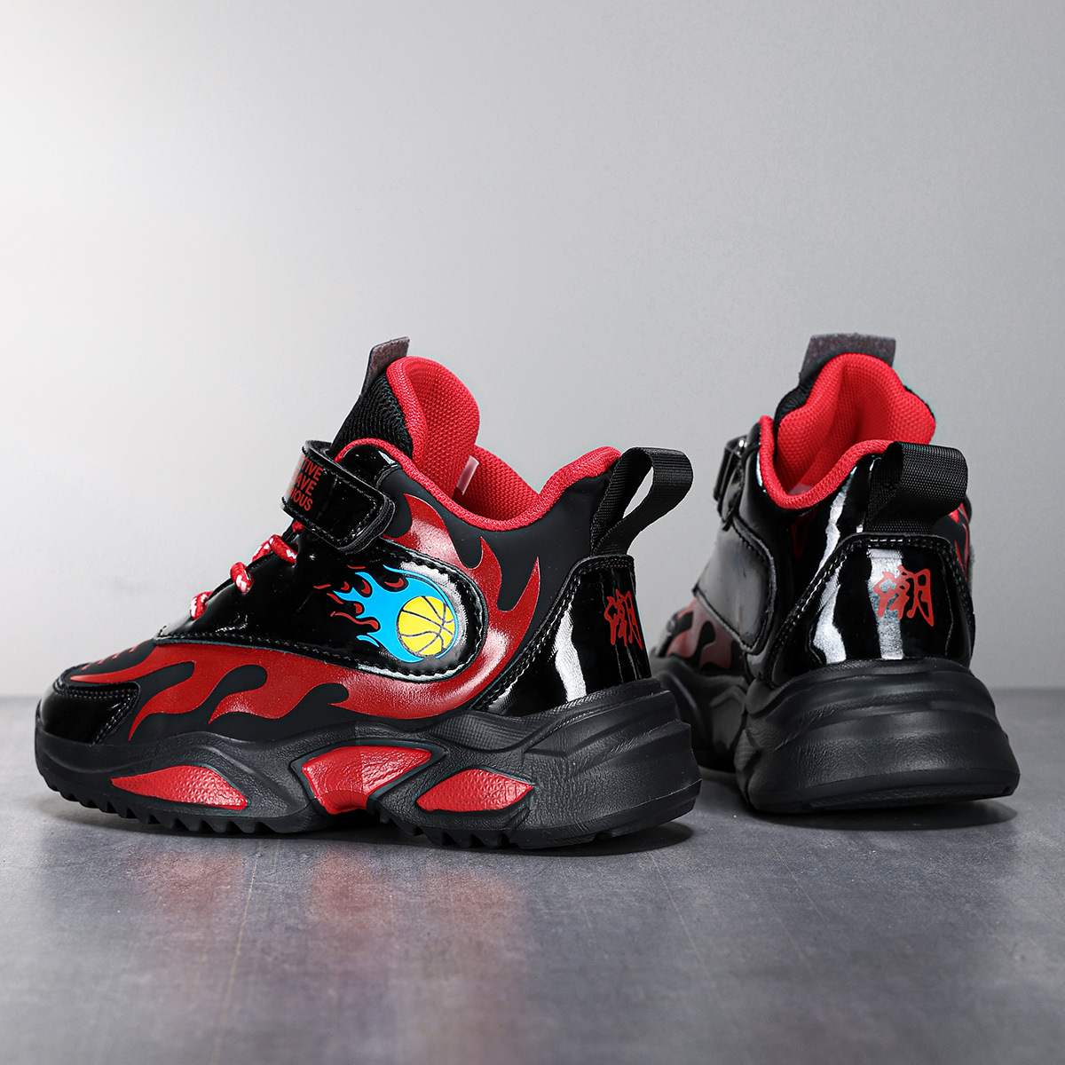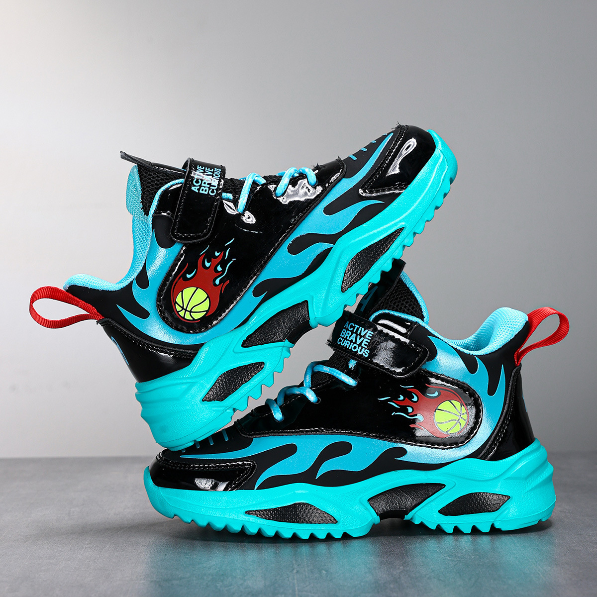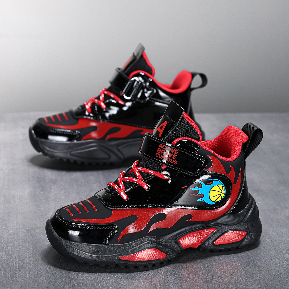 농구 신발 벨크로 통기성 야외 가죽 소년 신발 새로운 큰 어린이 2025 유행 캐주얼 스포츠 신발스토어 가기