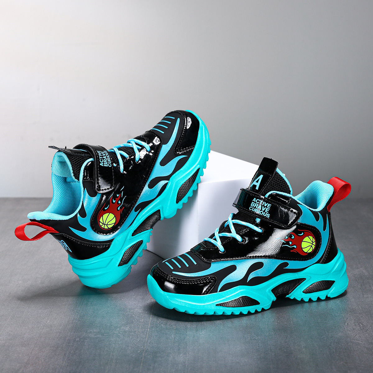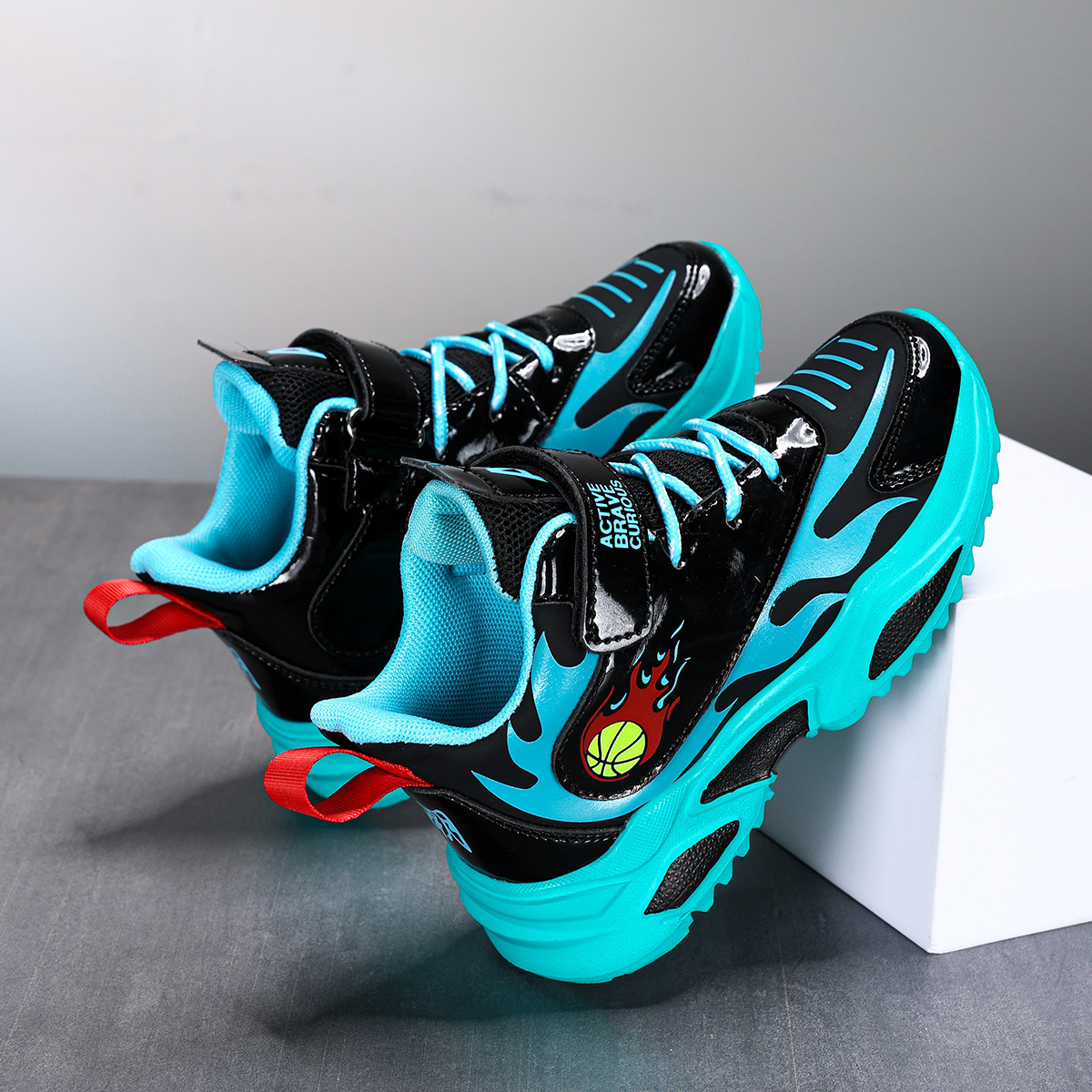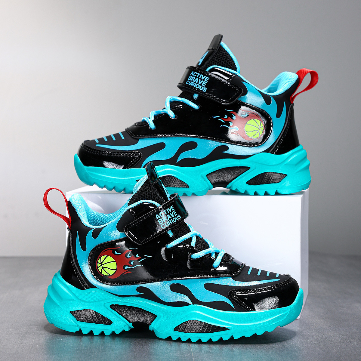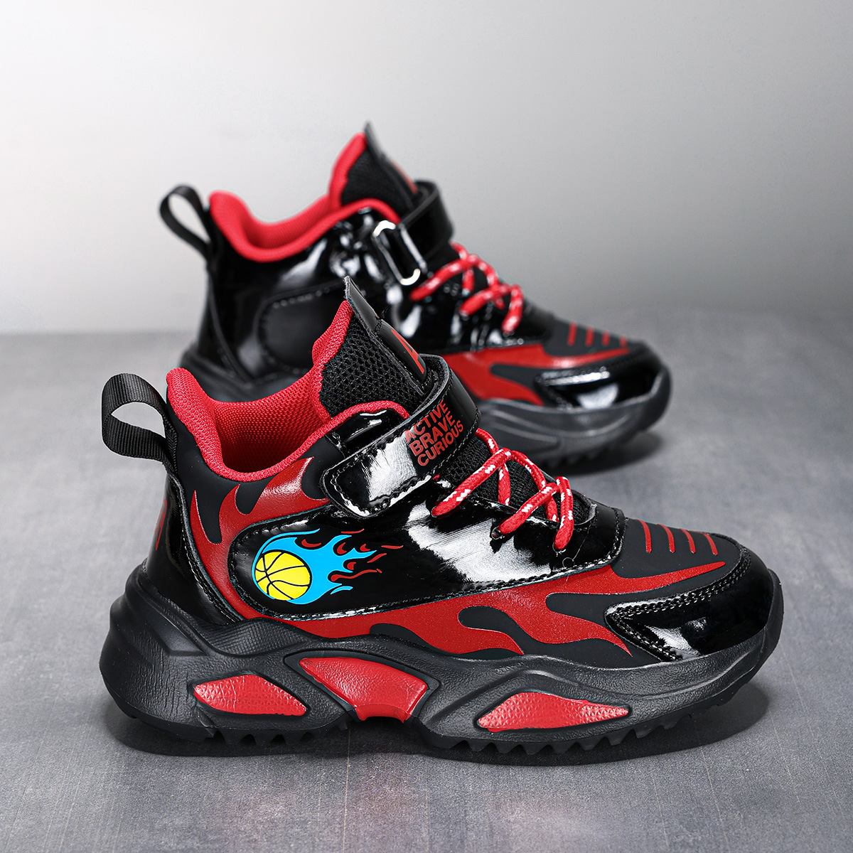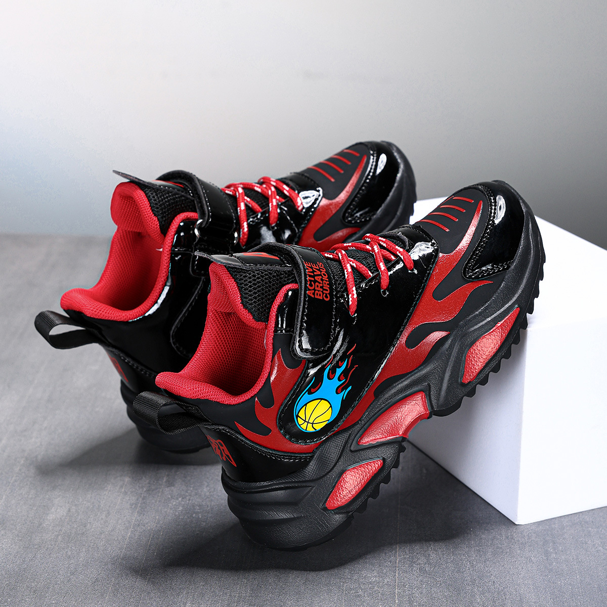 농구 신발 벨크로 통기성 야외 가죽 소년 신발 새로운 큰 어린이 2025 유행 캐주얼 스포츠 신발스토어 가기