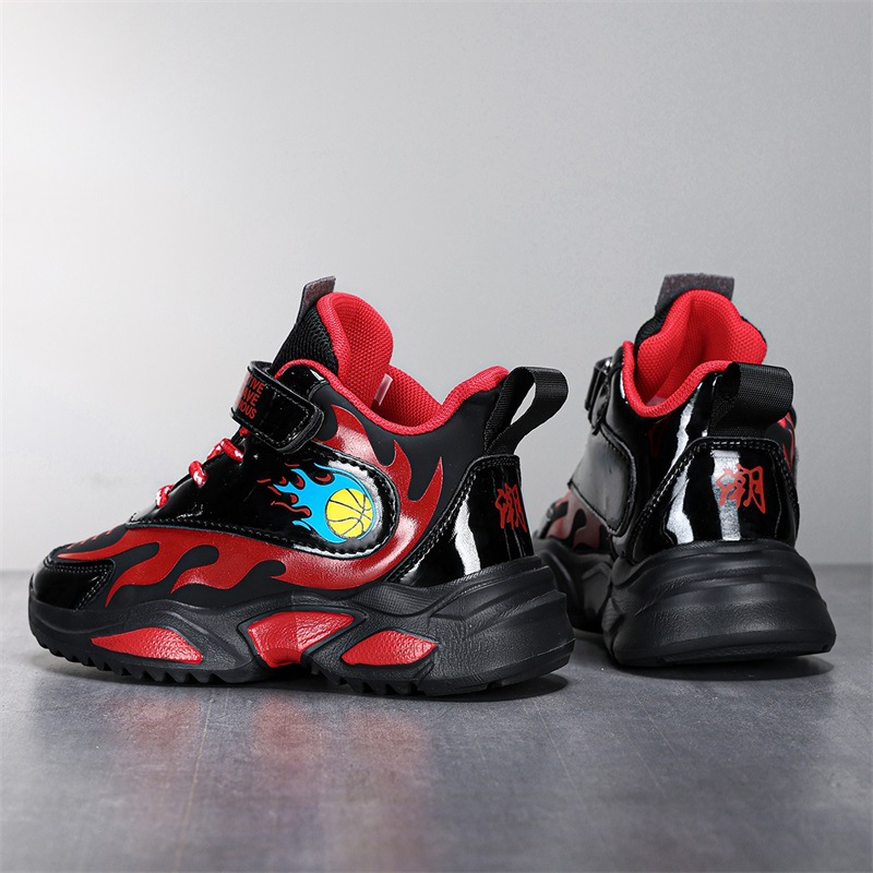 농구 신발 벨크로 통기성 야외 가죽 소년 신발 새로운 큰 어린이 2025 유행 캐주얼 스포츠 신발
