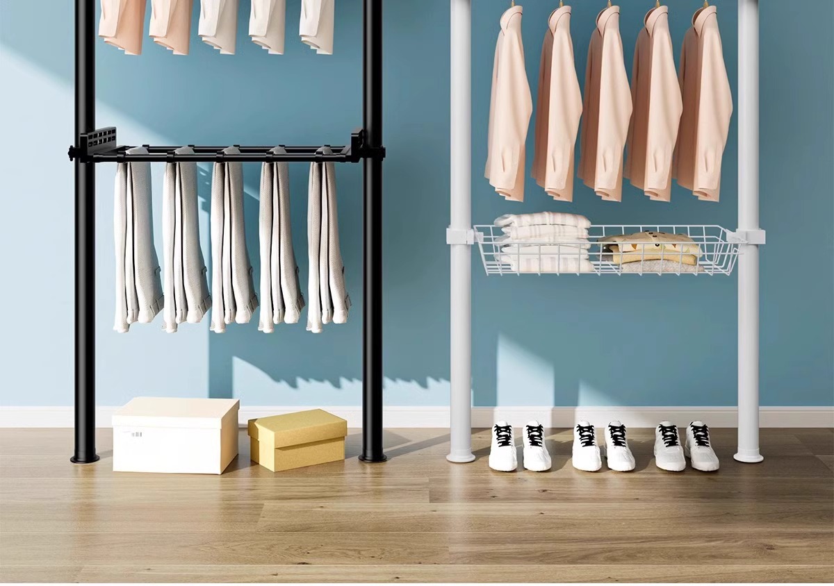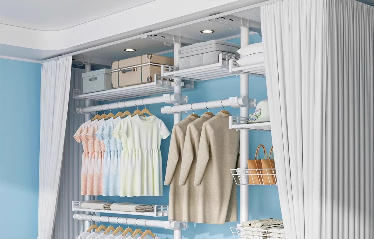 침실 바닥 옷걸이 하늘 상단 보관 랙 클로크룸 오픈 옷장 건조 랙 금속 옷장 선반