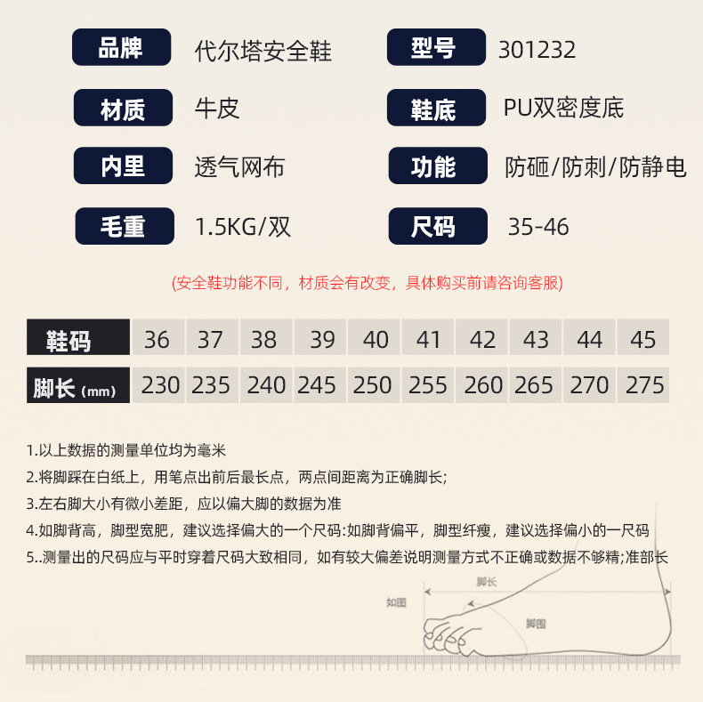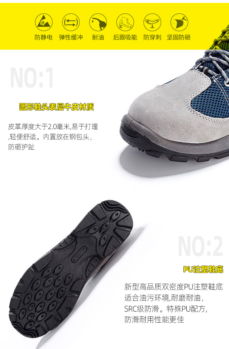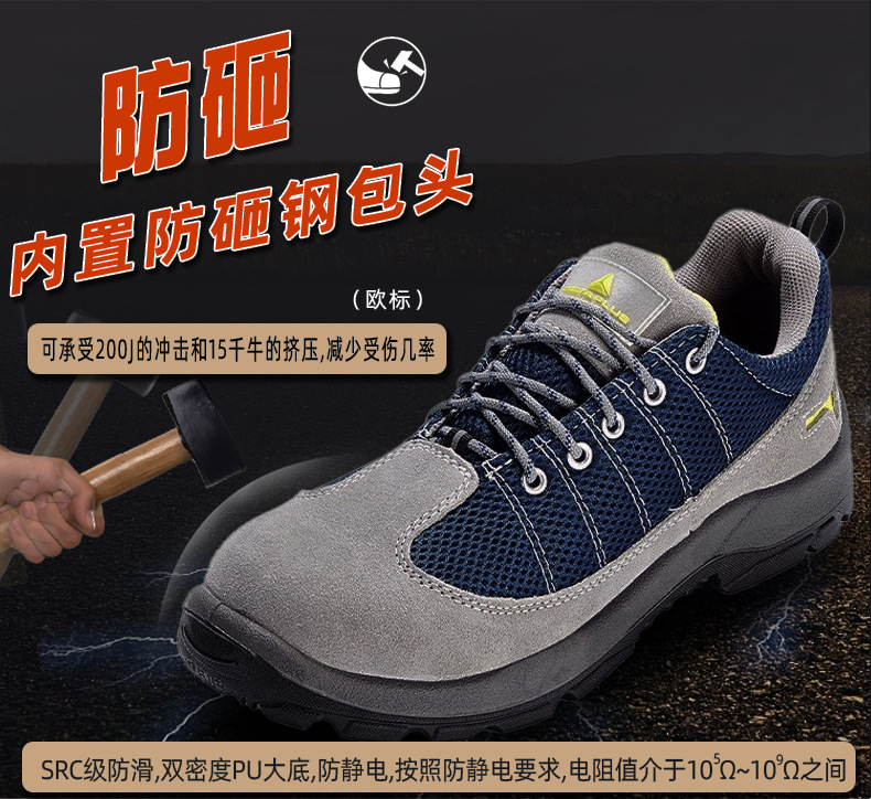 델타 301232 스매싱 방지 및 피어싱 방지 안전 신발 건설 현장 작업 안전 신발 미끄럼 방지 안전 신발