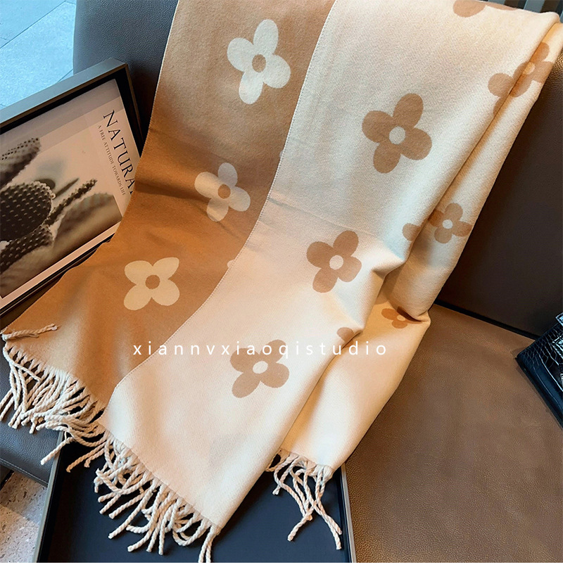 小仙女柔软舒适包芯纱加厚围巾外搭两用披肩女冬季双面用保暖围脖