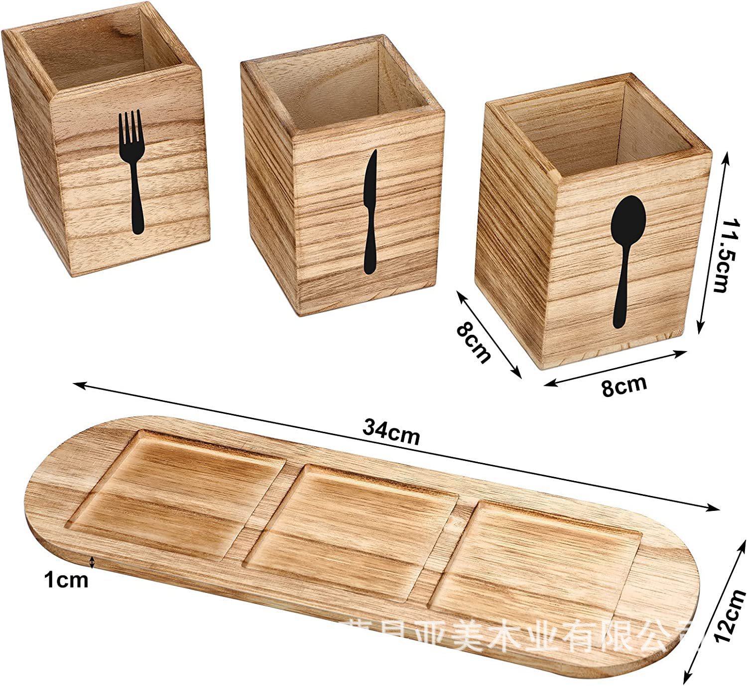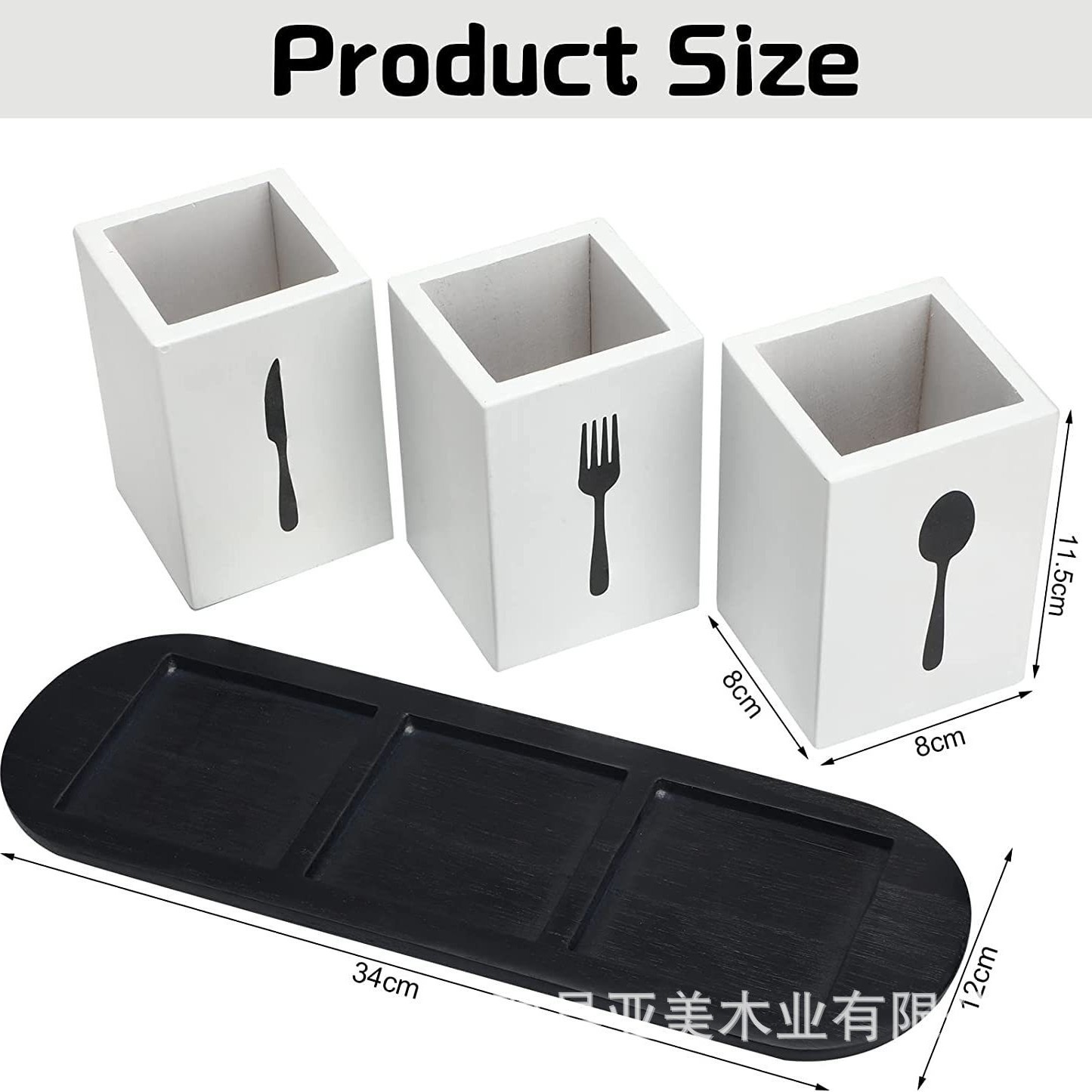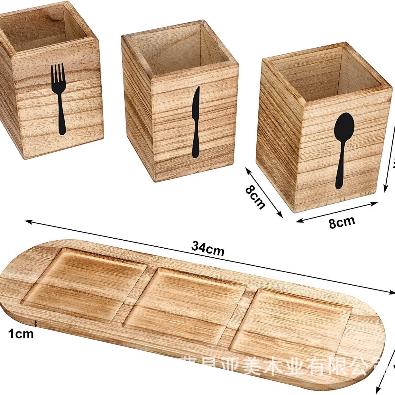 솔리드 우드 나이프와 포크 스토리지 박스 세척 색상 현대 간단한 주방 레스토랑 가정용 식기 보관 스몰 사이즈 4 종 세트