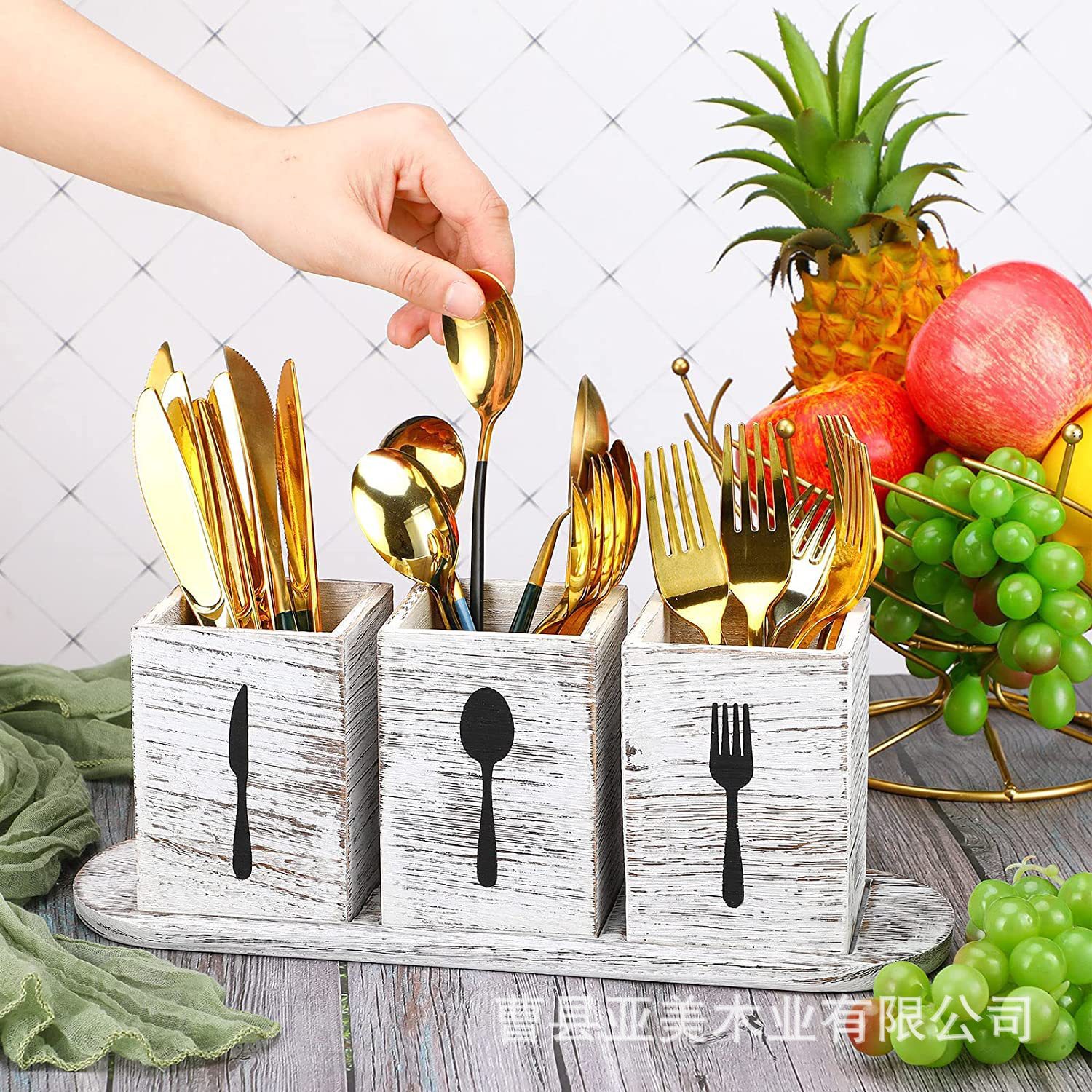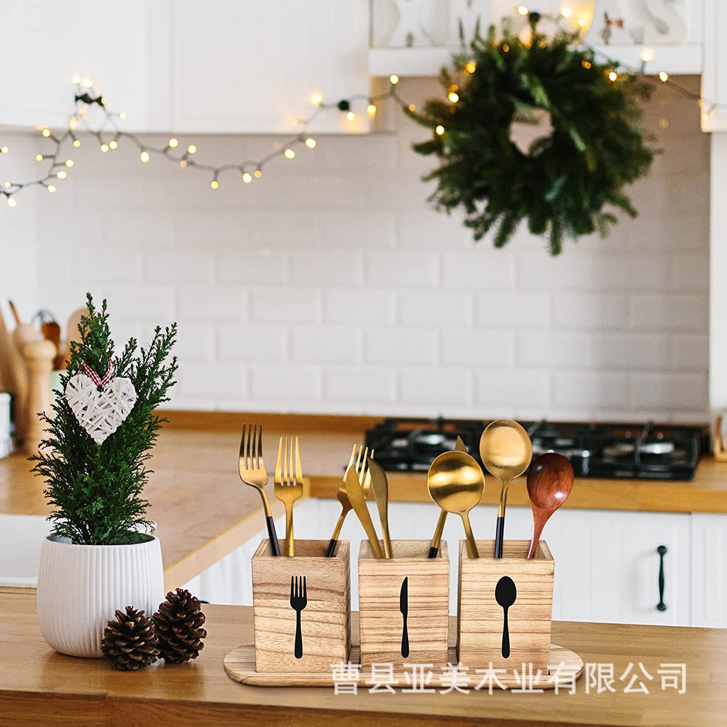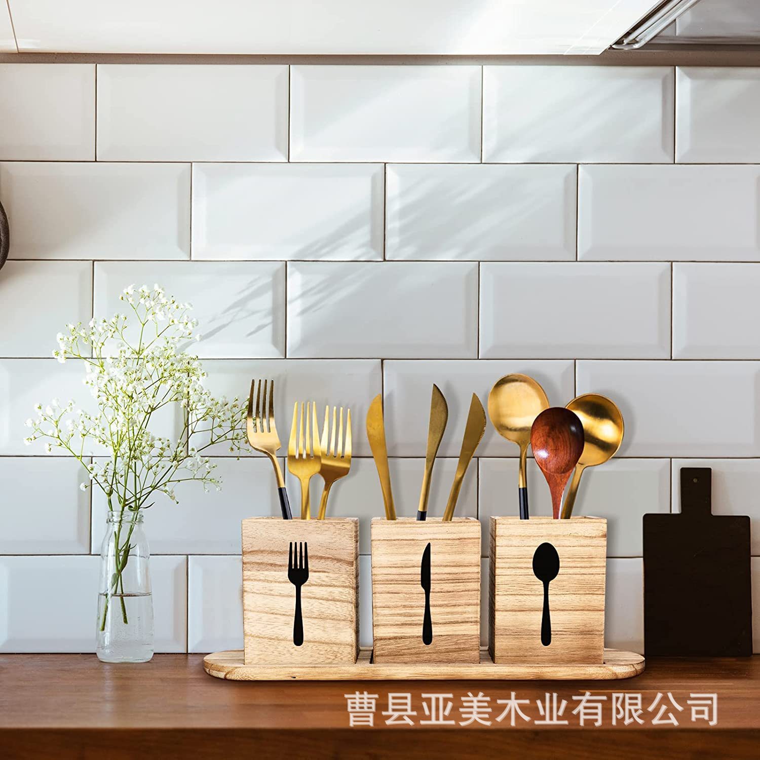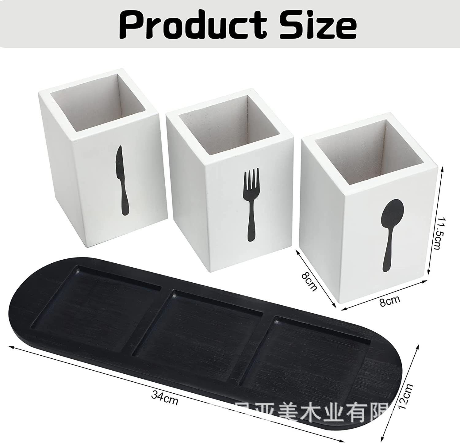 솔리드 우드 나이프와 포크 스토리지 박스 세척 색상 현대 간단한 주방 레스토랑 가정용 식기 보관 스몰 사이즈 4 종 세트