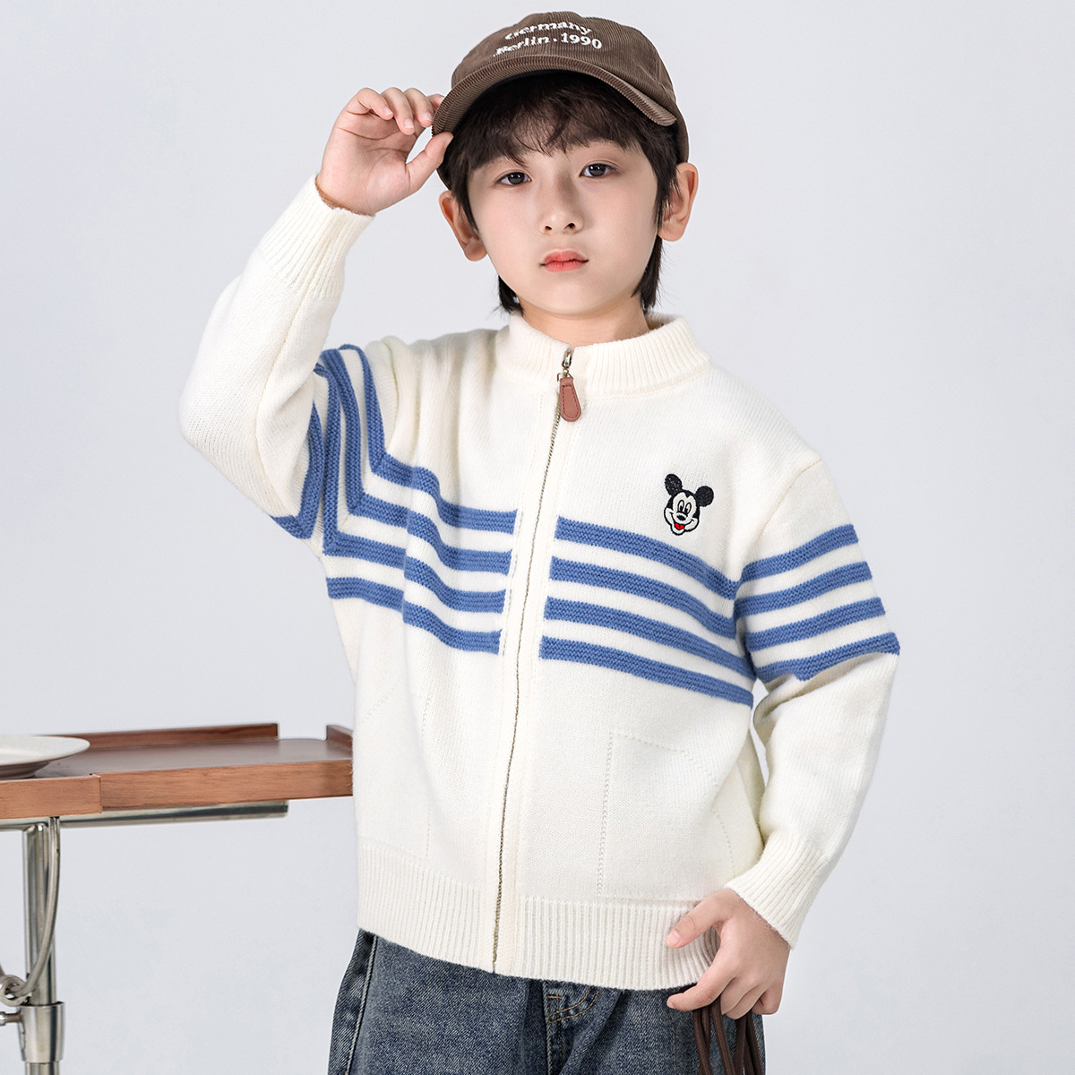미키 아동복 소년 니트 카디건 가을과 겨울 새로운 어린이 스웨터 세련된 패션 베이비 스웨터스토어 가기